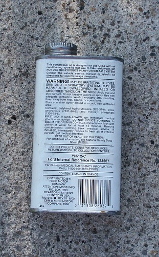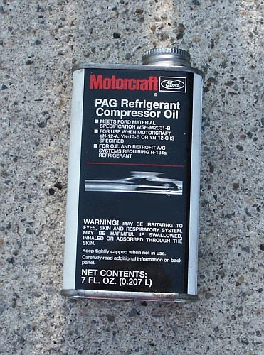 etc. Most of these will have r134a refrigerant in them which is what you're after for your crownvic. However, many of these combination cans will also have leak sealer in them. This sounds good in theory because low refrigerant charge is usually the result of a leak somewhere. Unfortunetly, these leak sealers are also good at sealing things up things you don't want sealed up like the small hole in your orifice tube. The design idea of these sealers is that refigerant will leak out through external holes that shouldn't be there and then the moisture in the external ambient air will cause the sealer to harden into a superglue like substance around the unwanted hole. Unfortunetly, older a/c systems usually have some residual moisture inside them so the sealer will become active when it's not supposed to be. Even if the your a/c system is completely dry and the leak sealer does not harden up prematurely, you can still end up with a big expensive mess if you later have to discharge the a/c system and let ambient air in for some sort of component replacement service. Many of these combination cans will also have refrigerant oil inside them. You need PAG46 oil for your 1994+ crownvic's a/c system, and other oils can cause accelerated component wear. No one refrigerant oil will service all vehicles. Recent ford cars generally use PAG-46, recent BMW's are PAG 100, recent general motors vehicles are PAG-150, etc. Many of these combination cans also have some sort of PROA additive in them that is reported to boost a/c performance. The effectiveness of these additives at improving your car's a/c system performance is questionable, but these proa additives by themselves do not usually seem to cause problems. For the lowest risk of complications in the future, purchase straight r134a refrigerant without any additives. You might have to hunt around a little bit for such a product, but it's well worth the effort. |
