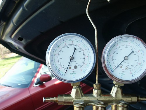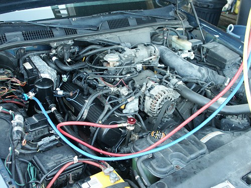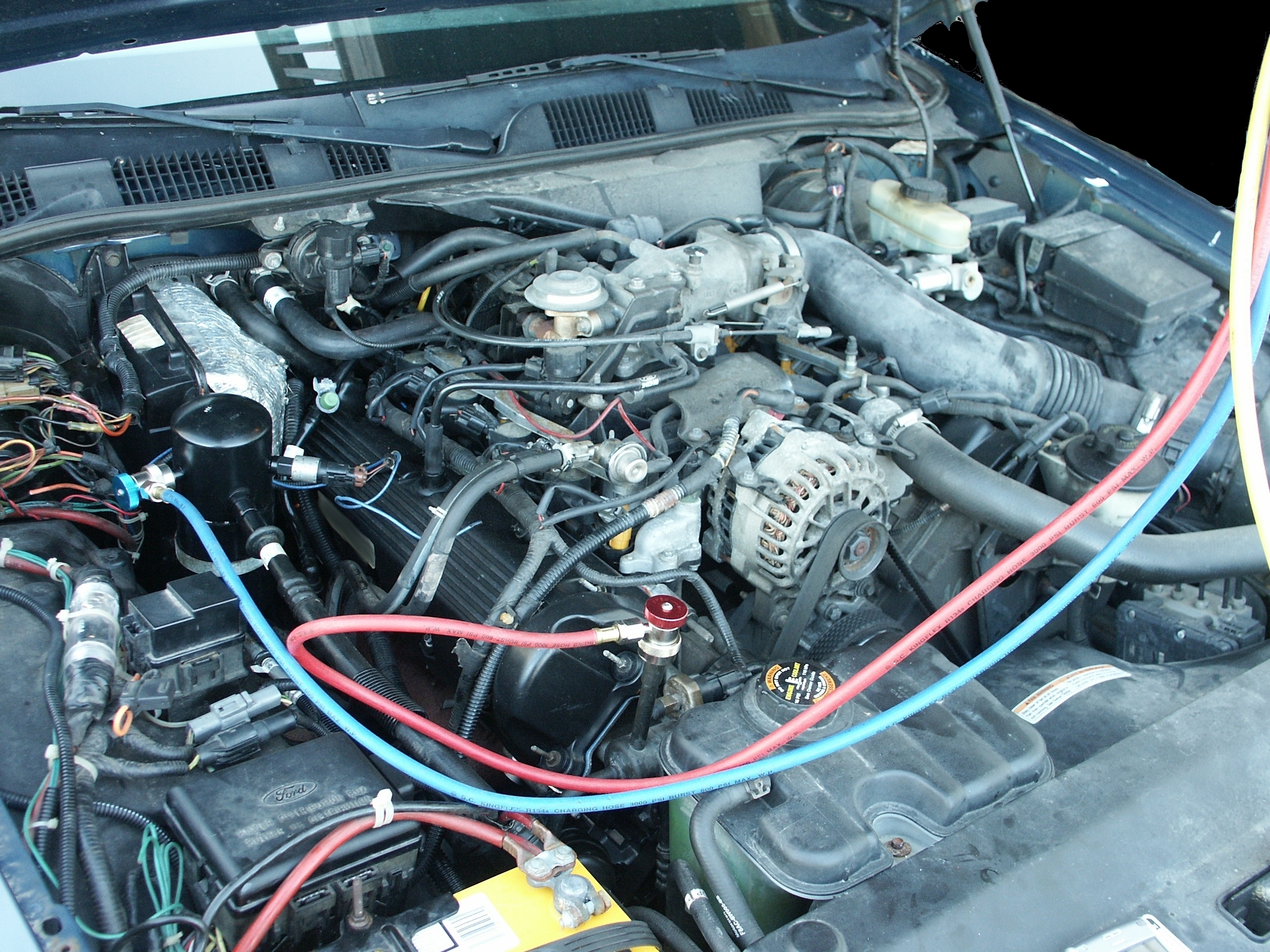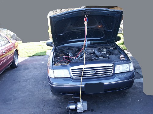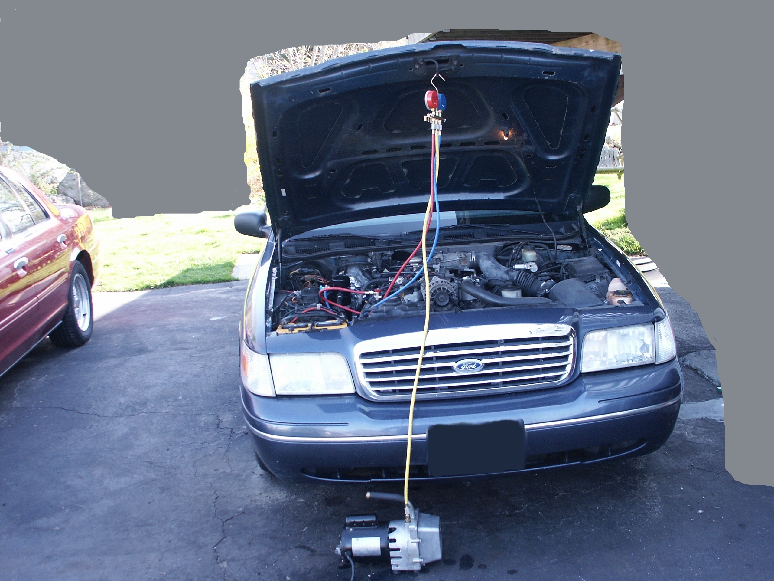 | Fordiesel69: Two points worth mentioning. The compressor is prefilled with oil. This is bad. PAG and POE oils are extremely hygroscopic. When satuarated with atmospheric water molecules, it will become an acid as well as a lubricant. This will eat the condensor and evap over a period of time. Best thing to do is dump the factory fill oil out of the used compressor or new compressor and install fresh out of the can (sealed) genuine ford oil, and get the compressor installed in 15 minutes and sealed and in a vacuum or top with nitrogen until you can get it to a shop to do the vacuum. The compressor is the LAST part to be installed. After about 15 minutes the oil becomes saturated and the silicate in the drier will not be able to remove it. The other point would be, to never let the car "sit" in a vacuum. This old rule has been superceded in the HVAC industry now being new oils are introduced. Back in the mineral oil days this was fine. Ideally, you want to get the vacuum to -30 and then down to 400 microns using a micron guage. You could even settle for 700 for automotive systems. But without a micron guage, its just a guess. You also should never remove your guages, and then put a can tap on. This alone will break the vacuum considerably. Sorry for going against what you did, but you did break your vacuum and performance + longjevity will be reduced. Other than those two points, excellent writup. It sure beats paying a shop $300+ labor to do all this. |
