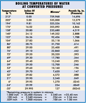 | Chevyguy: 400 - 700 microns is a pretty low vacuum level. My big old pump at work can get about that low on one of my flask setups. I use a mm HG or Torr gauge and getting below 1 mm (1000 microns) takes work. |
