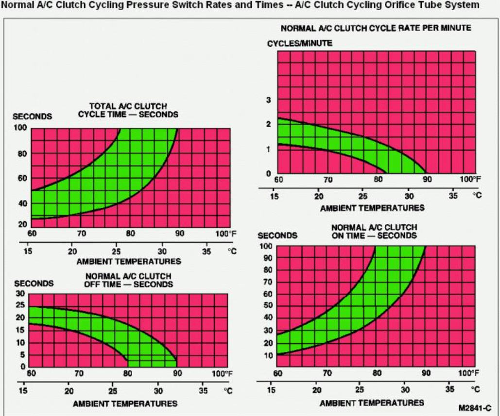 service manual. ideally, you'd have a refrigerant machine to recover the refrigerant charge from the system and weigh it. but the crownvic uses a fixed displacement a/c compressor (not a variable displacement unit like found on some other cars). so the temperature/pressure graphs should work reasonably well. ![]() ![]() ![]() ![]() ![]() |