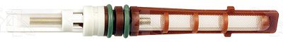 tube serves two purposes: -the white mesh screen catches debris in circulation -the precision machined brass metal tube inside meters refrigerant if you were to pull apart a few low mileage 1-2 year old cars, you'd usually find some fine metal particles from the compressor on the orifice tube screen. this is normal. if the orifice tube screen has so much debris on it that refrigerant flow is completly blocked, this is a not normal and indicates some sort of component failure. |