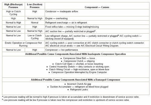 | CV94: My 1994 Mercury Grand Marquis started blowing hot a/c air this season. The compressor clutch just cycles on and off at idle. The low side gradually in about five seconds increases from l5 to 45 and then the compressor comes on and pumps it back down in about 2 seconds. Then it immediately does this over and over. From Ford disgnostics this appears to be a restricted orfice tube or a/c liquid line. Auto Zone sells the tube for $5 and another for $25. They say all I need is needle nose pliers to pull the tube out where Ford has a special tool. Did you just use pliers. Do you know if I can use the $5 tube instead of the $25. Harbor Freight Tools has the manifold for about $50 and a vacuum pump of 2 and one half cfm for about $80.So I can replace the tube for about what some want just to check out system.Do you believe this would work? |