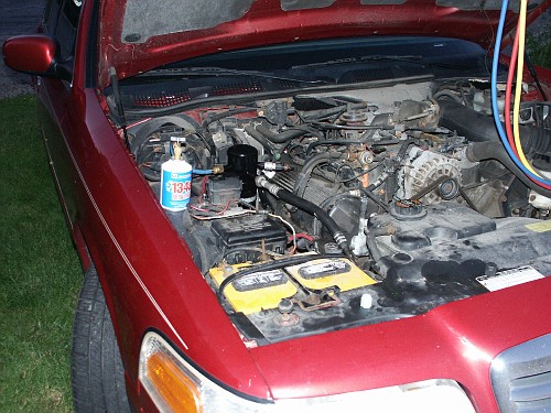 Now that the 3 cans of refrigerant have been added, a manifold guage
