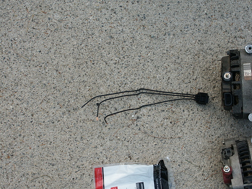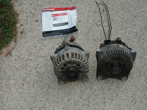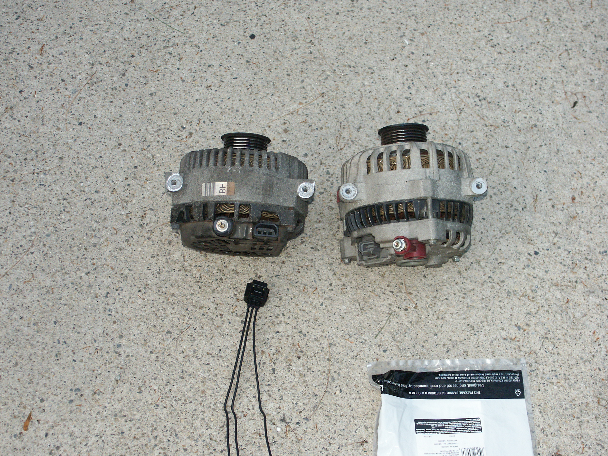 The "new" 6g alternator is on the left, the old broken 4g alternator is
