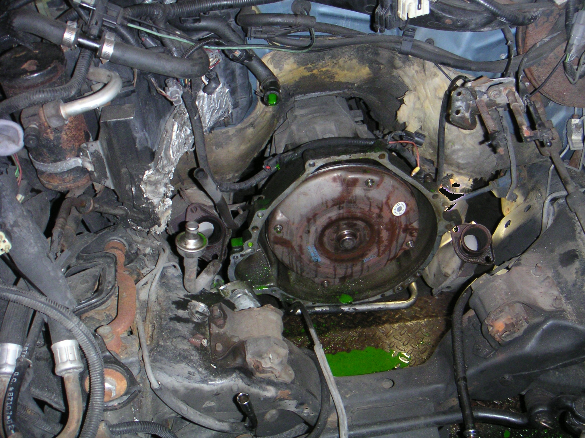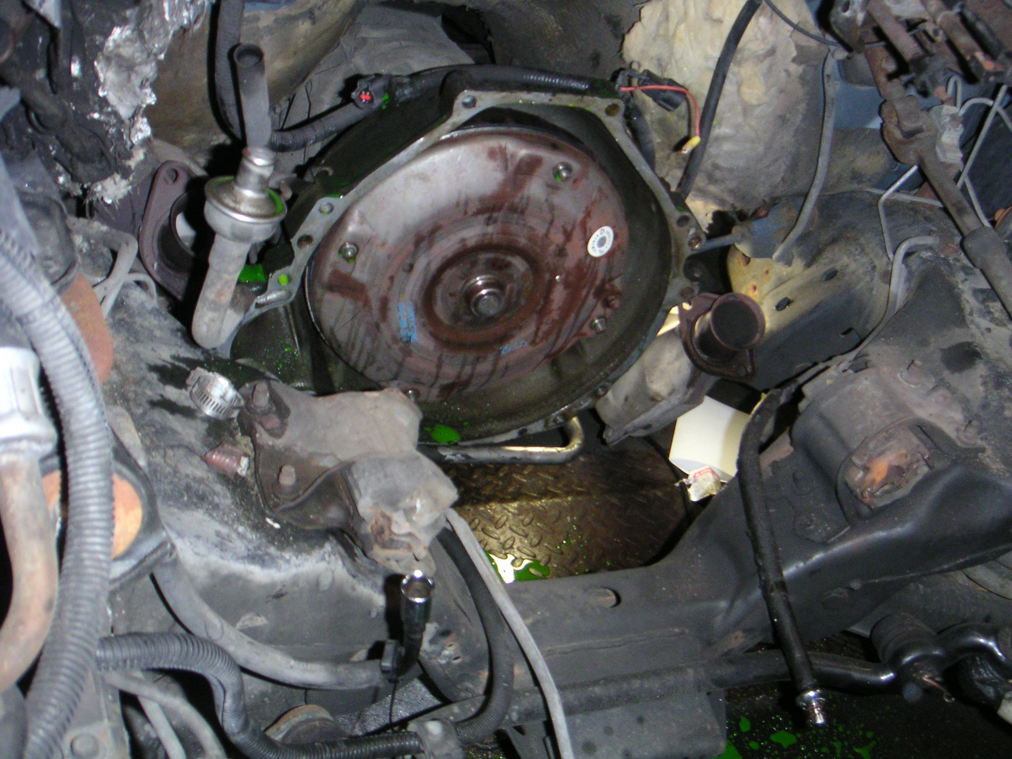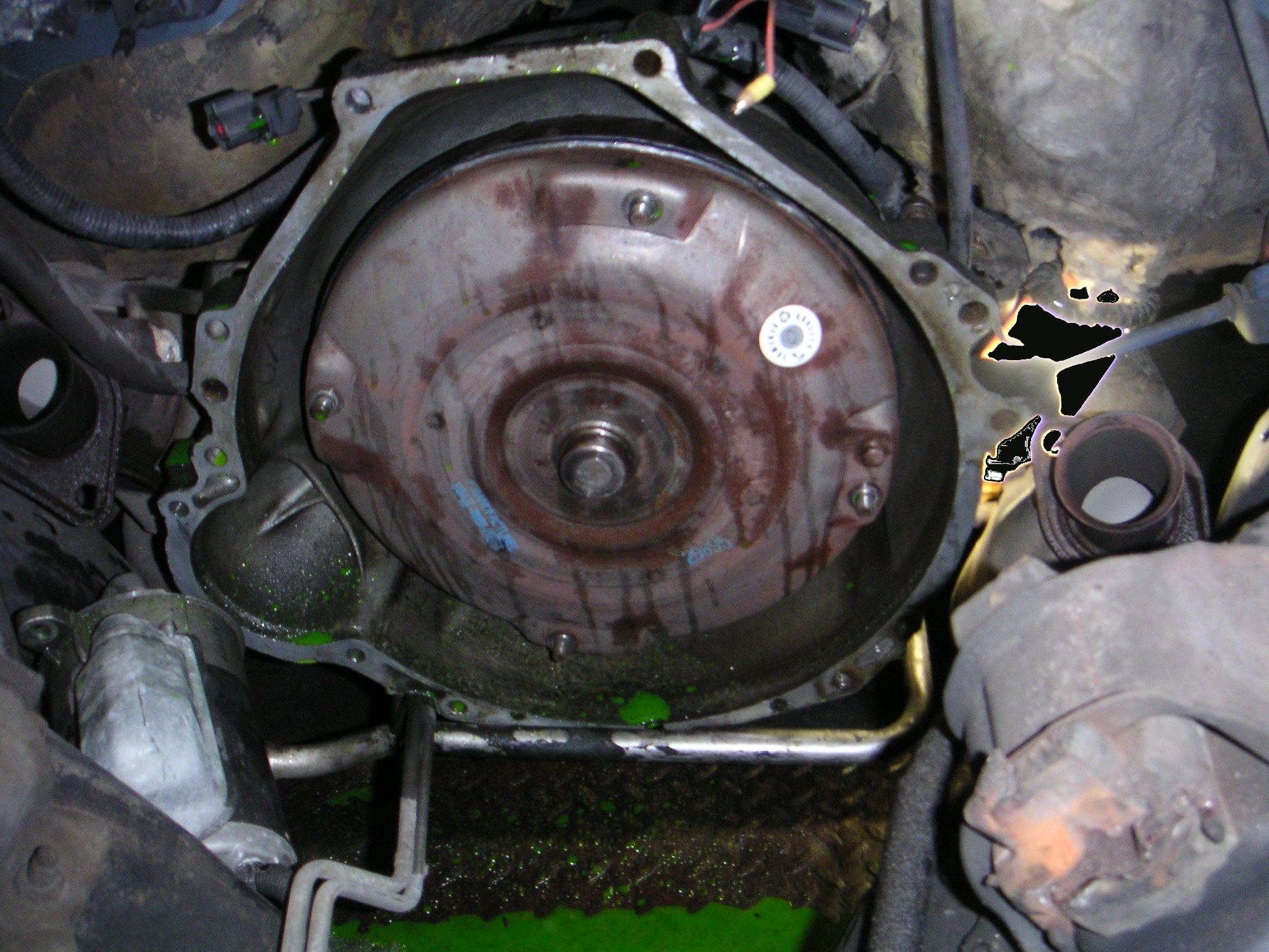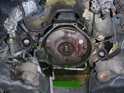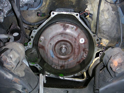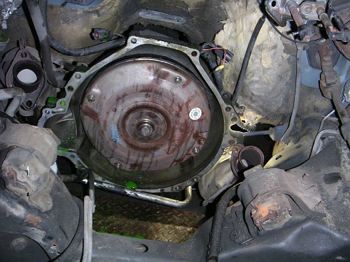 Take note of the "2-bolt" starter mount on the transmission bellhousing