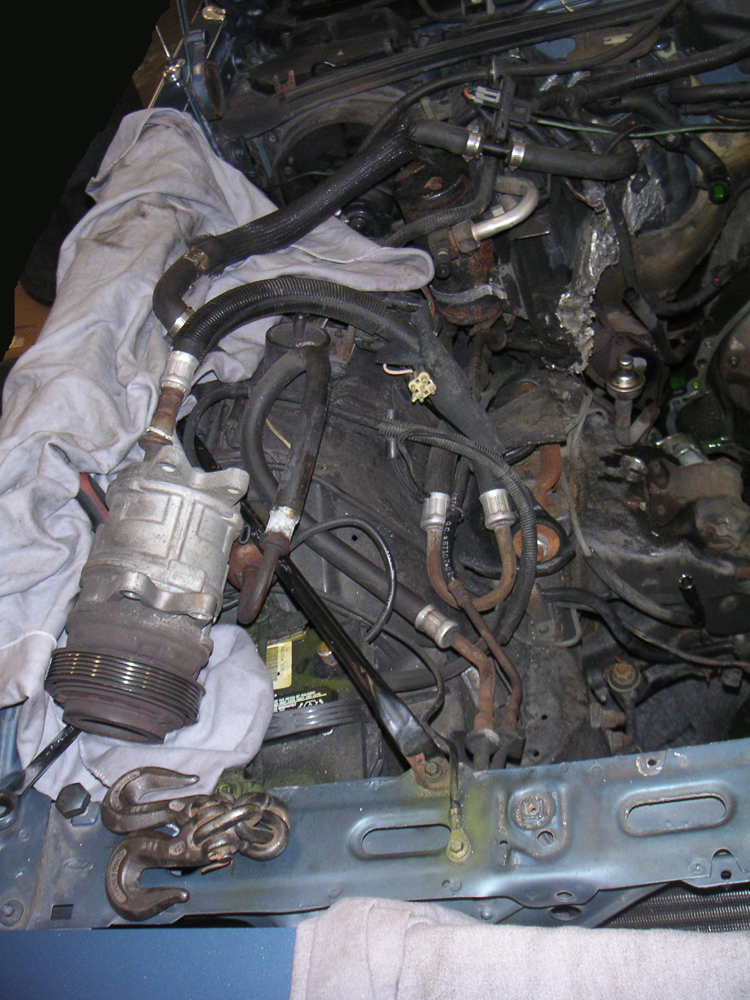 The air conditioning compressor and hoses