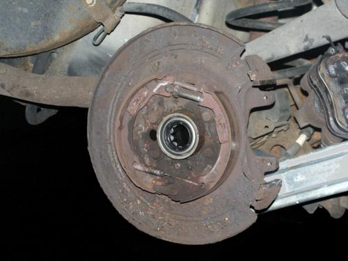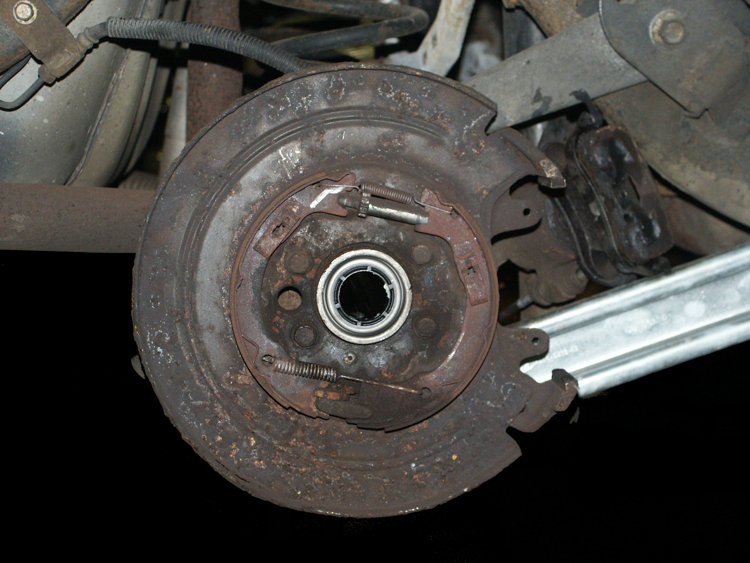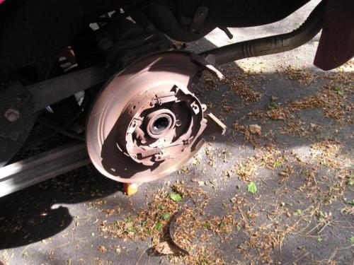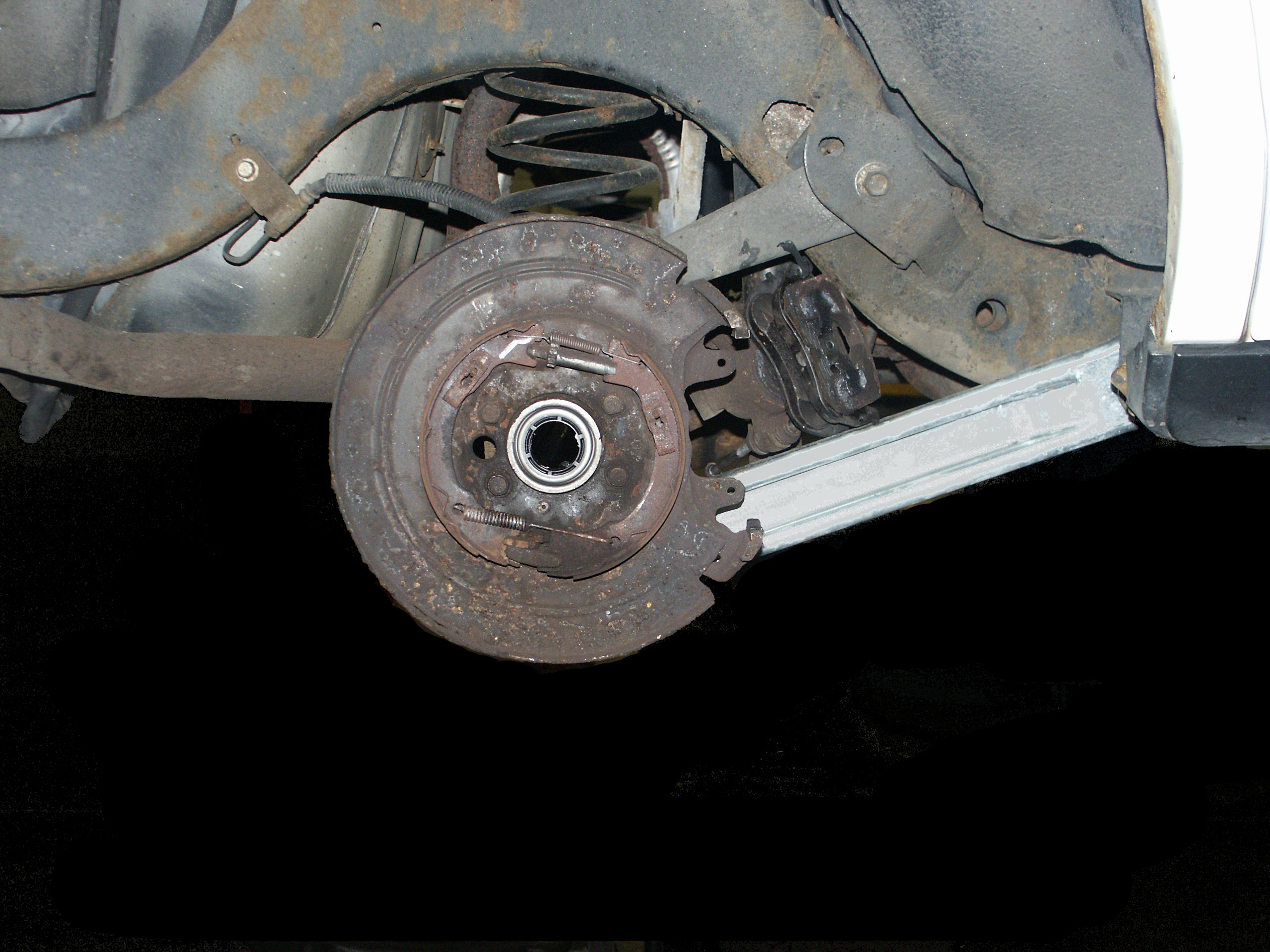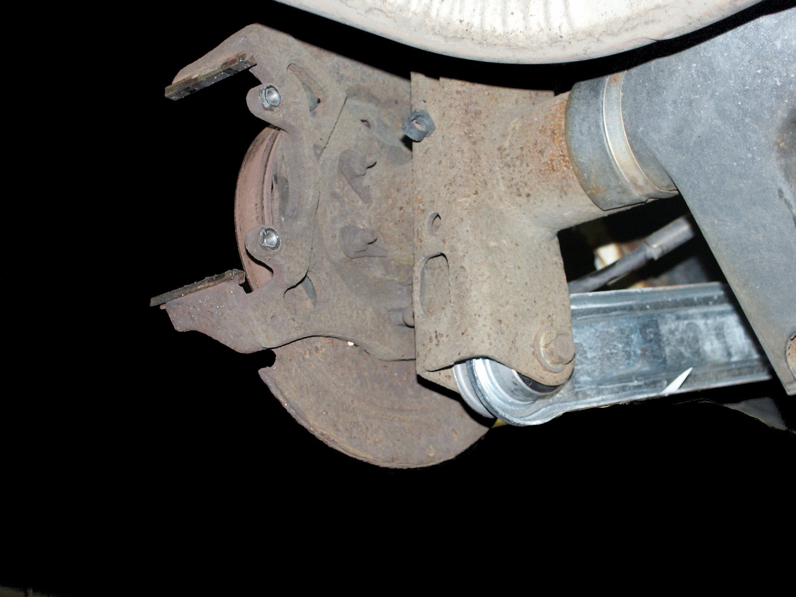 The e-brake backing plates on the junkyard rear axle assembly were bent
