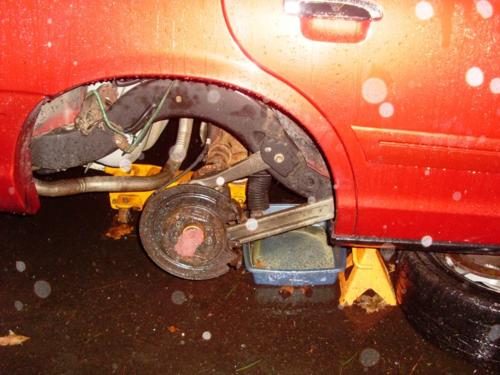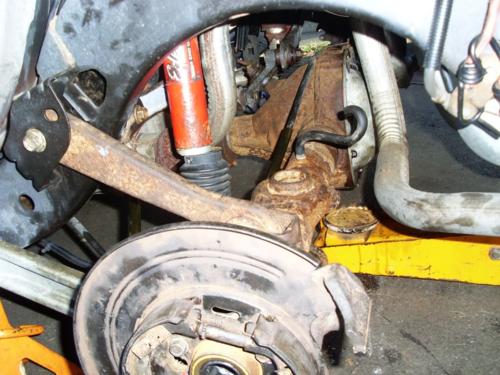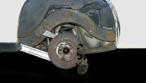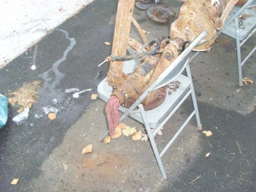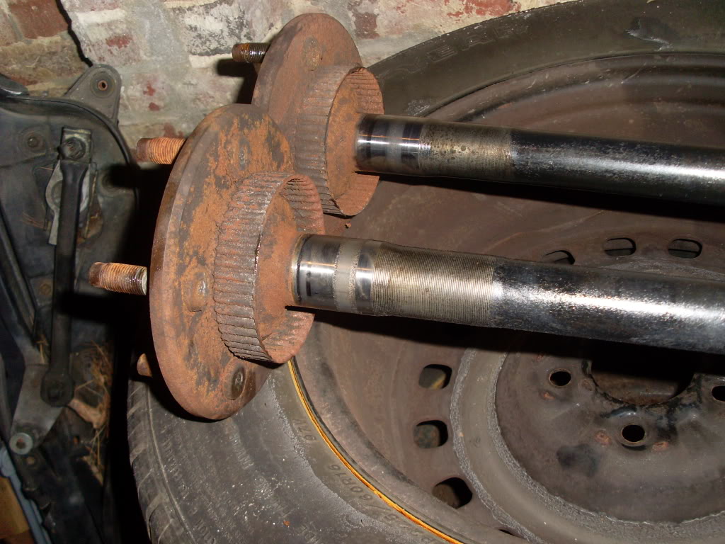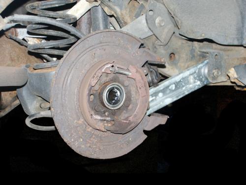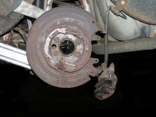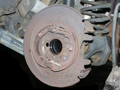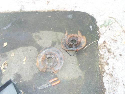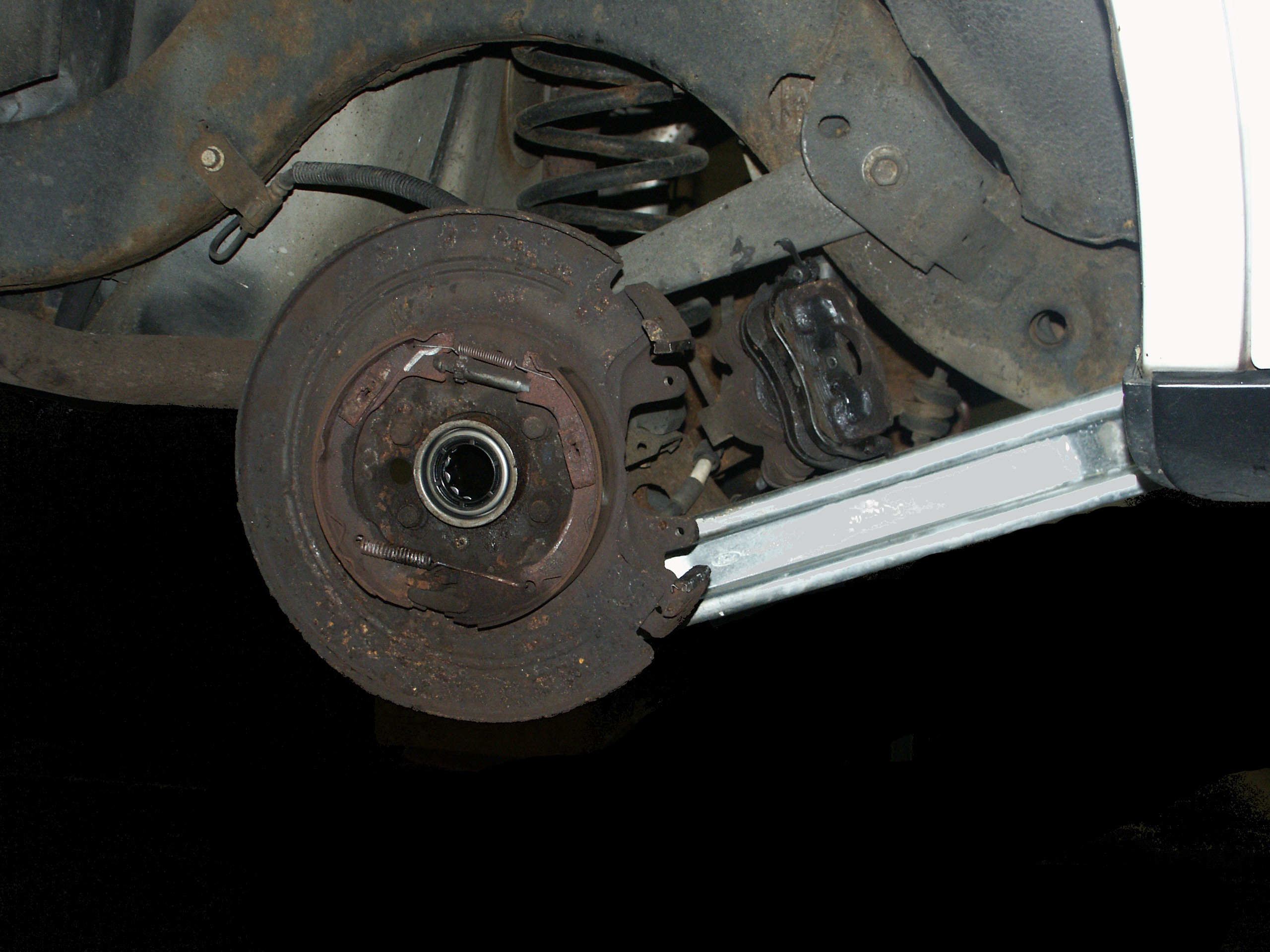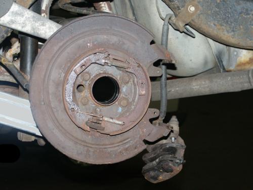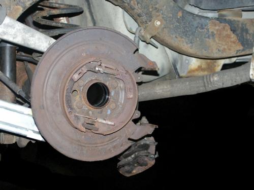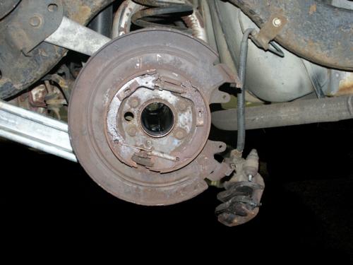 The e-brake backing plates on the junkyard rear axle assembly were bent