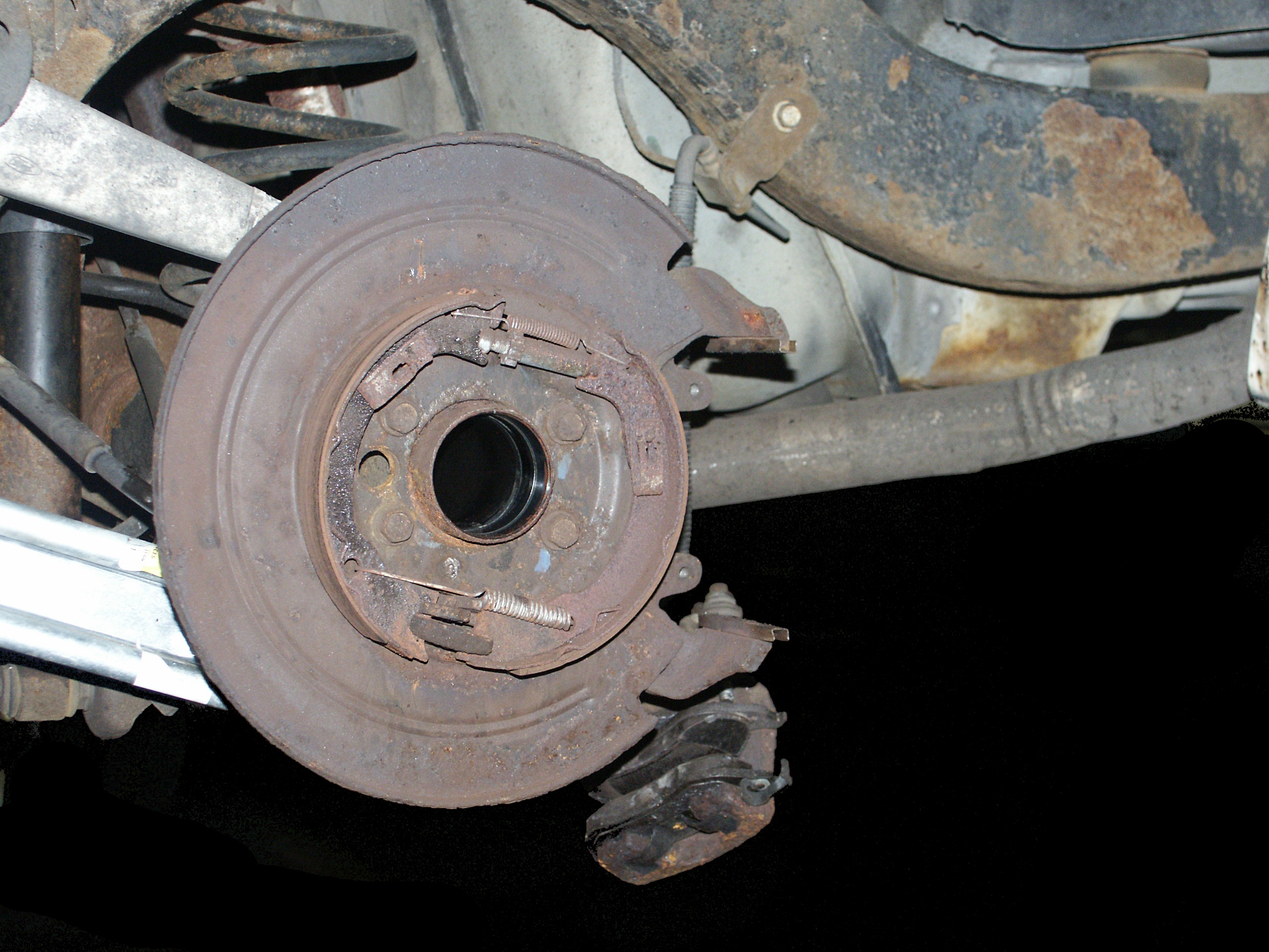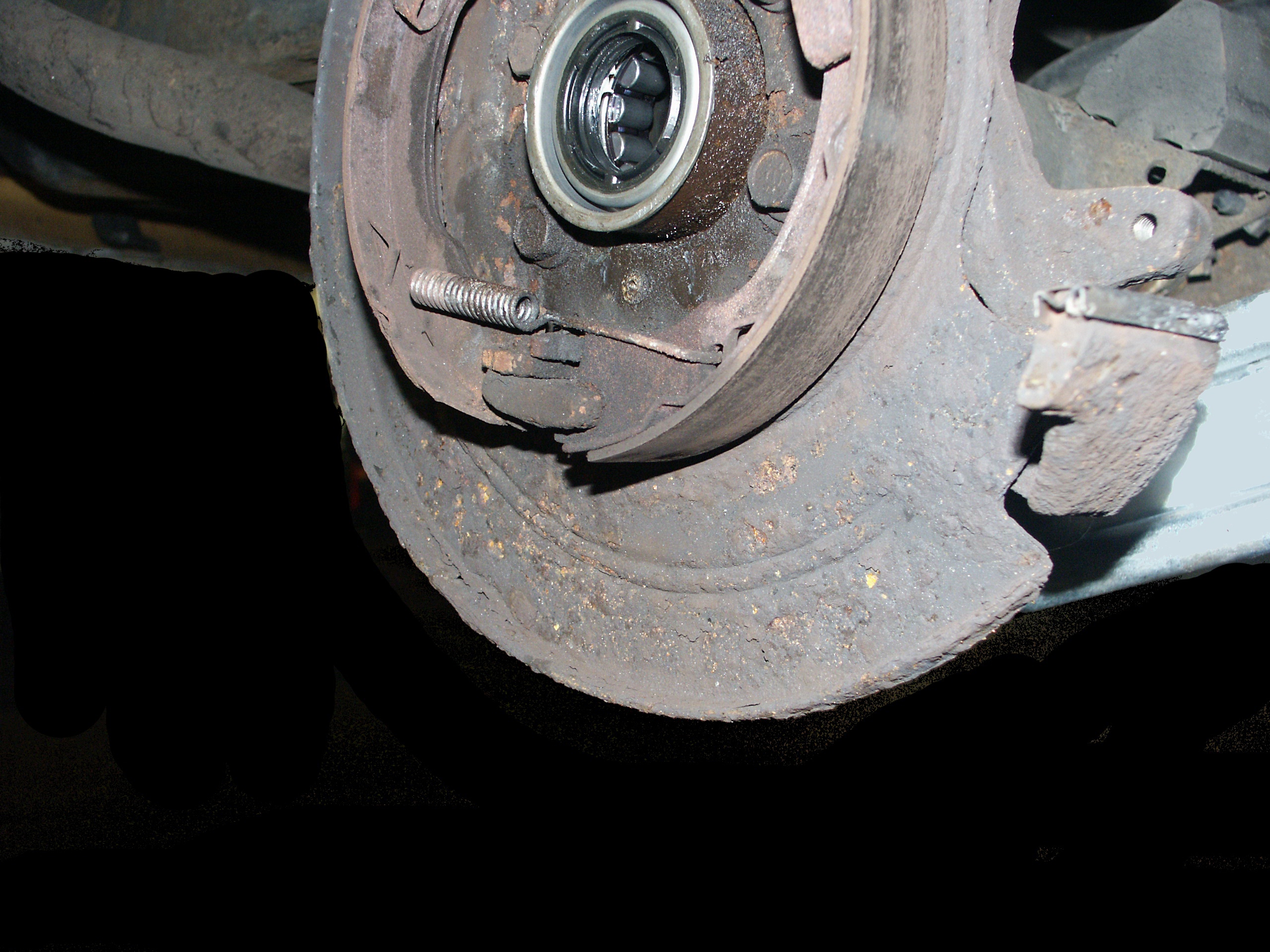 Damaged e-brake backing plates seem to be a common issue at the salvage