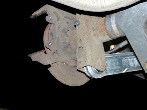 Leaving the caliper hanging by the flex hose like this is a bad service