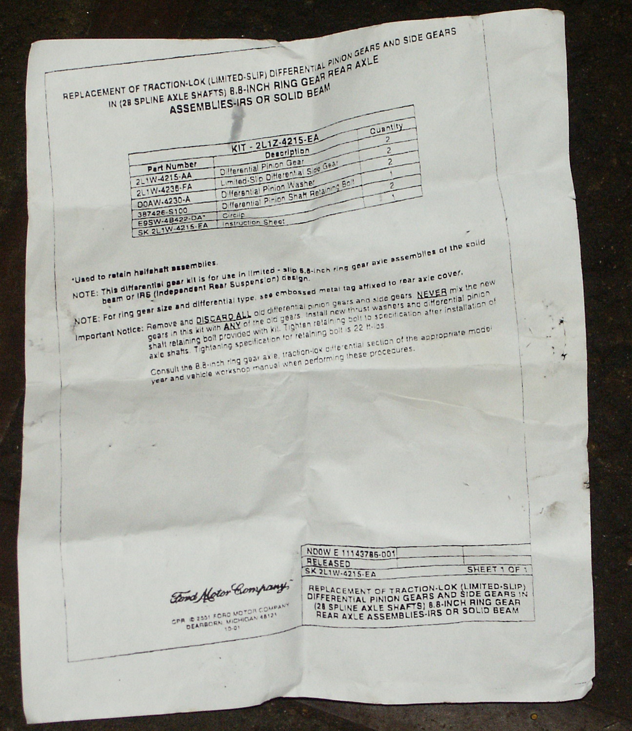 The 2L1Z-4215-EA differential side gear kit. This one is intended for