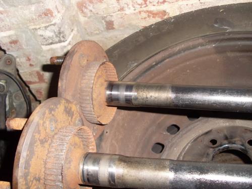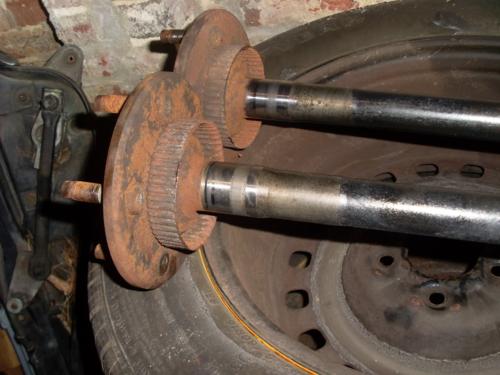 Here's one of the new axles next to the old ones. OEM ford axles with