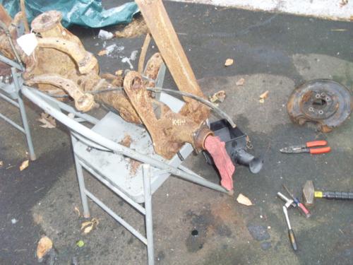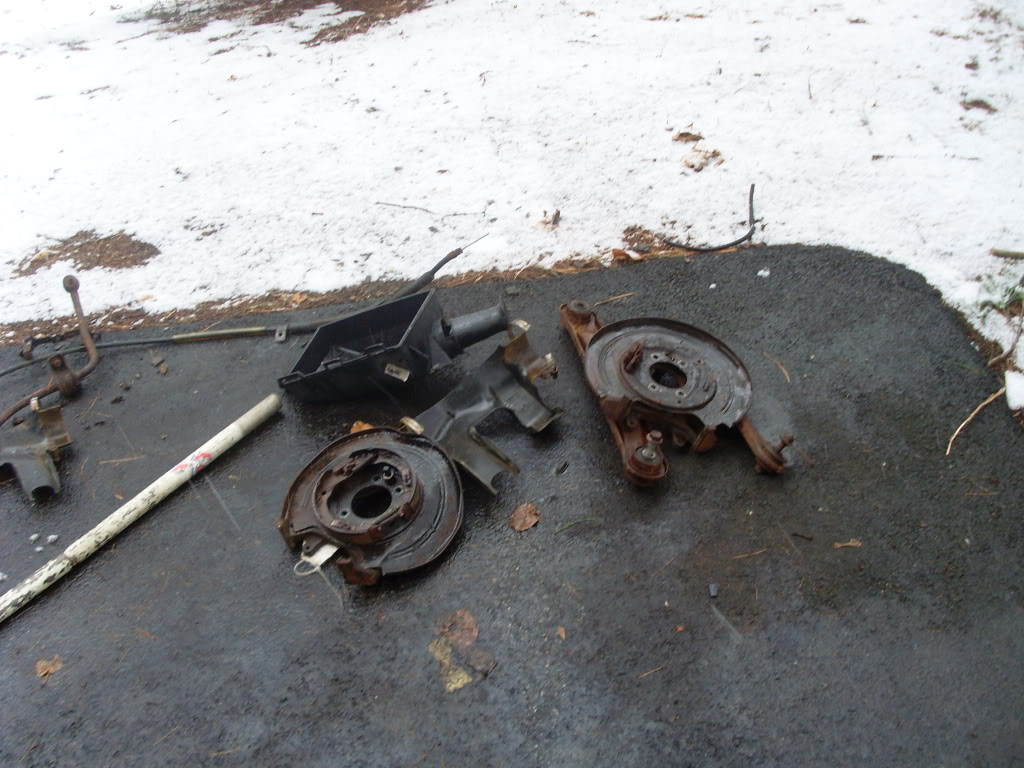 Here are the messed up junkyard e-brake backing plate assemblies.
