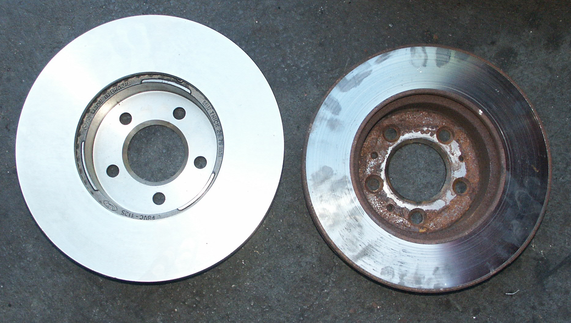 Here is a 1997 rotor next to the later 1998+ "big brake" one