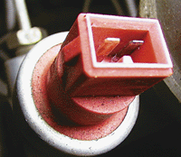 | 2. Water damage: This is one thing the otherwise rugged servo wasn’t designed to withstand and generally doesn’t. Moisture can make its way into the unit quite easily, and when you see this, you might as well price out a new one. It only takes a little moisture to wipe out the servo. If you can acquire one honestly, it’s a good idea to have one of these units on hand for A-B-A swaps. Use an electronic amplifier from the car you’re working on; there are subtle differences that can be misleading. | 3. Discolored Terminal: This is the brake pressure switch, which breaks the circuit to the clutch in the servo with fluid pressure applied. You’ll find it on most early-model vehicles. Note the discolored terminal; this one has failed. These also can leak brake fluid into the connector and, when that happens, the switch will fail electrically most of the time. It’s quite easy to check the operation of this switch with a test light and a helper. There is a Crown Victoria recall package (P/N XW7Z-9G652-AA) that comes with a new brake pressure switch and a connector shell, and it can be used on any vehicle equipped with one of these brake pressure switches. It’s quite handy to get both parts because sometimes the connector shell will be damaged. | 4. Cancel switch: This is the cancel switch, which does the same job as the brake pressure switch on some applications. Earlier Tauruses and Mustangs had a different type, which was more of a linear pedal travel sensor. Remember that the switch pictured here is a self-adjusting ratcheting switch, and the plunger might be shoved too far back into the switch by upward pressure on the brake pedal, causing the cruise to be inoperative. With some carefully applied force, you can ratchet the plunger back out to a position where it will close the circuit. Check to see if 12 volts is present at pin 9 on the amp with the brake pedal released. Then apply the brake to kill the voltage, and you’ll know it’s okay. |