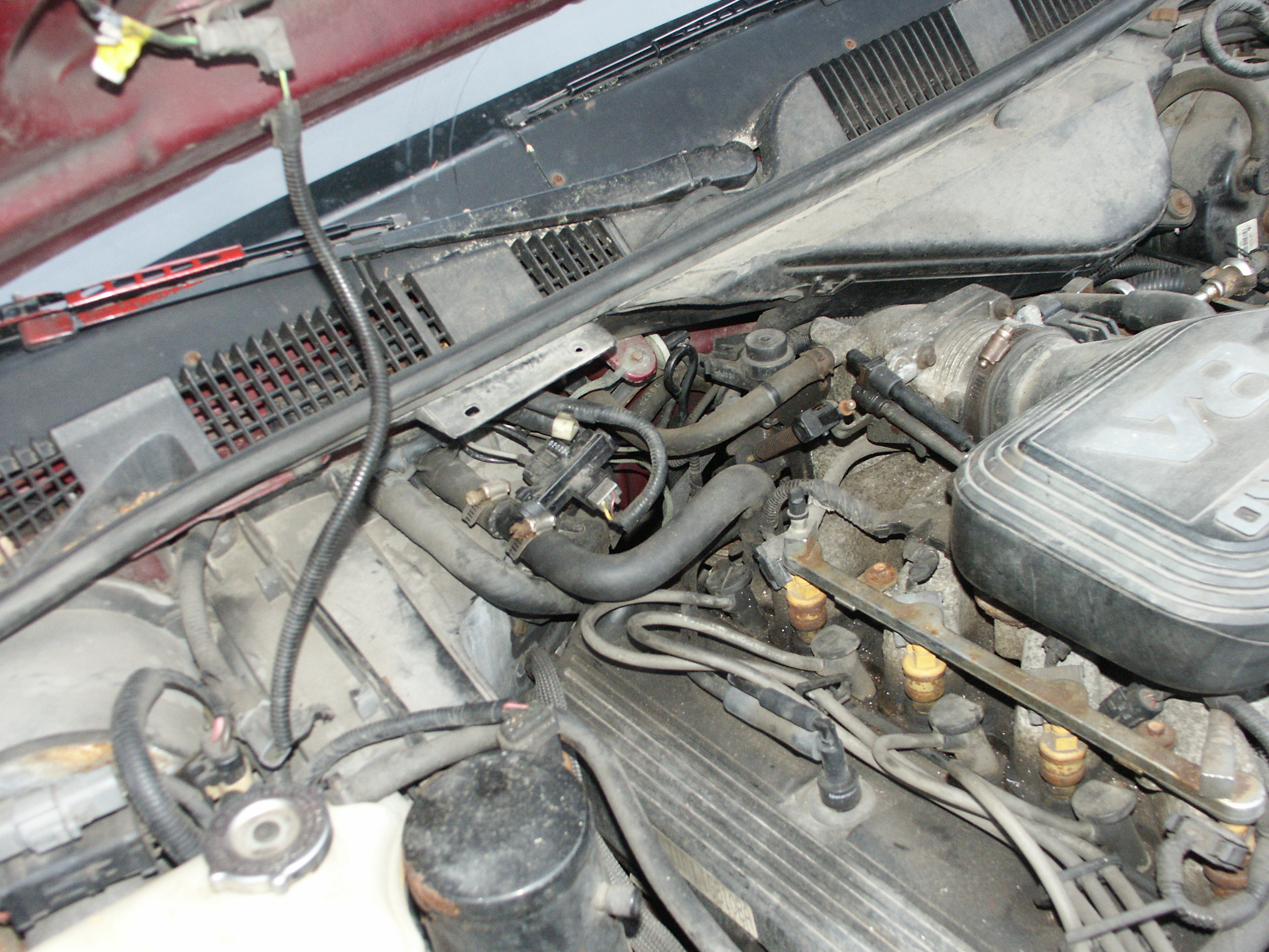 was located on one of the heater core hoses under the hood