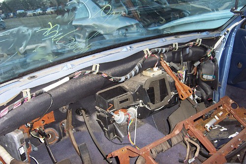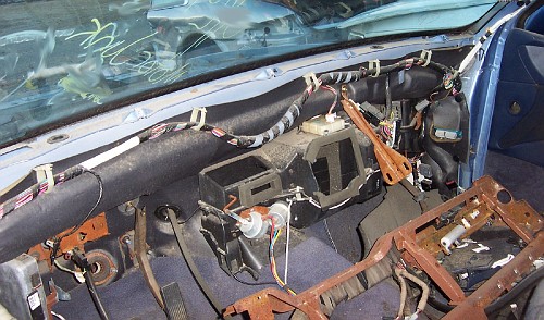 Here's the car with the new heater core installed and ready to slide