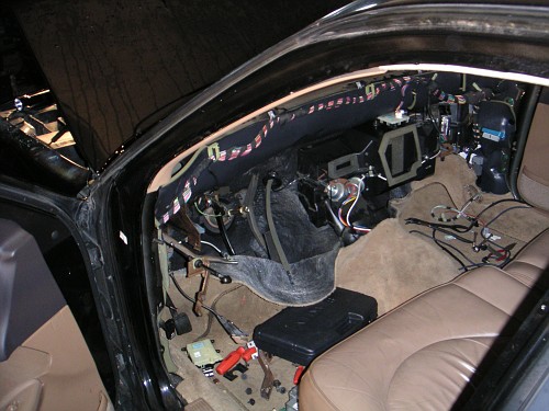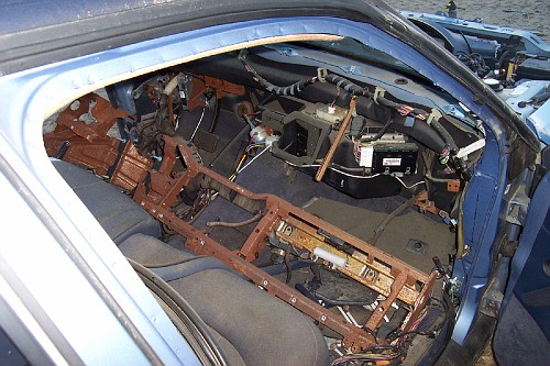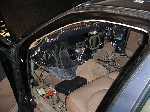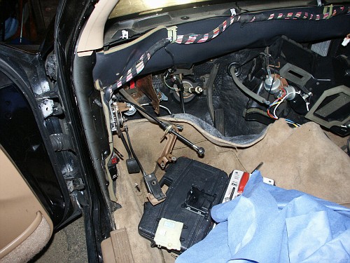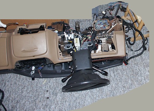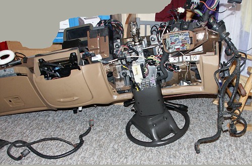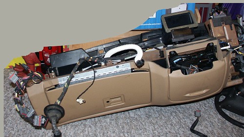 The dashboard in this vehicle was removed to replace a nonfunctional