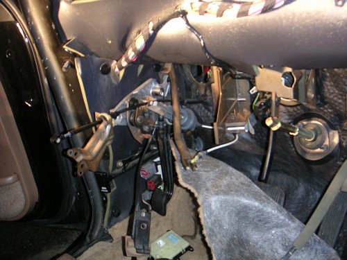the steering column, that way a new cable grommet didn't need to be