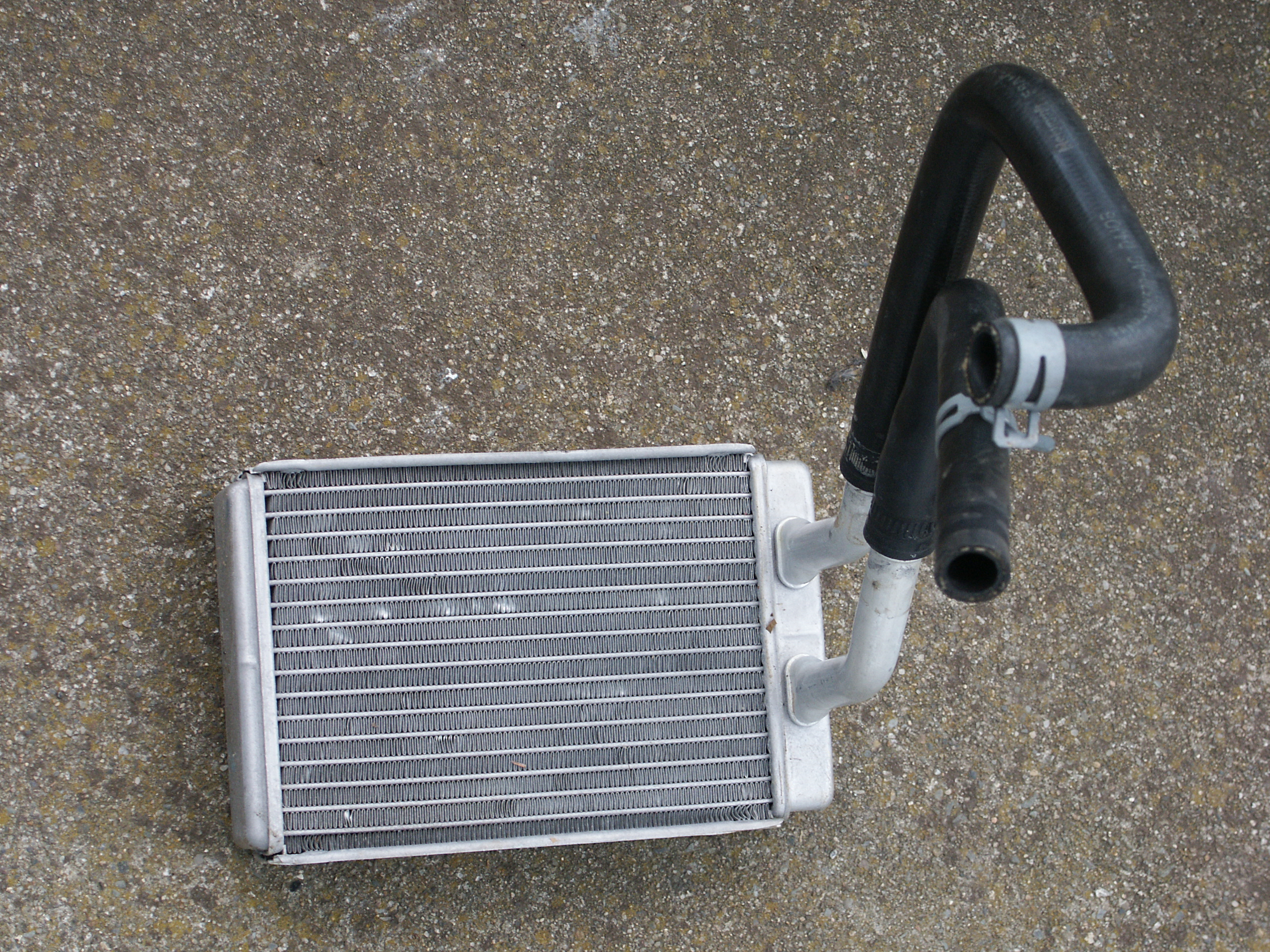 A heater core from a 1998 crown victoria with the rubber hoses
