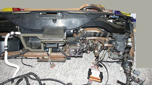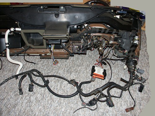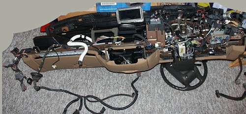 The back of the dashboard removed from the car.
