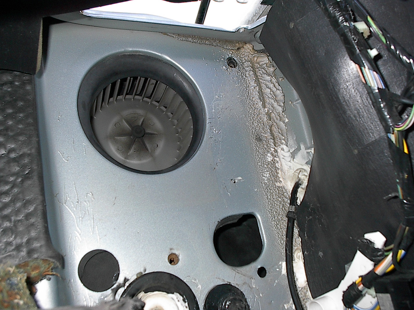defroster ductwork and the radio premium sound system wiring.
