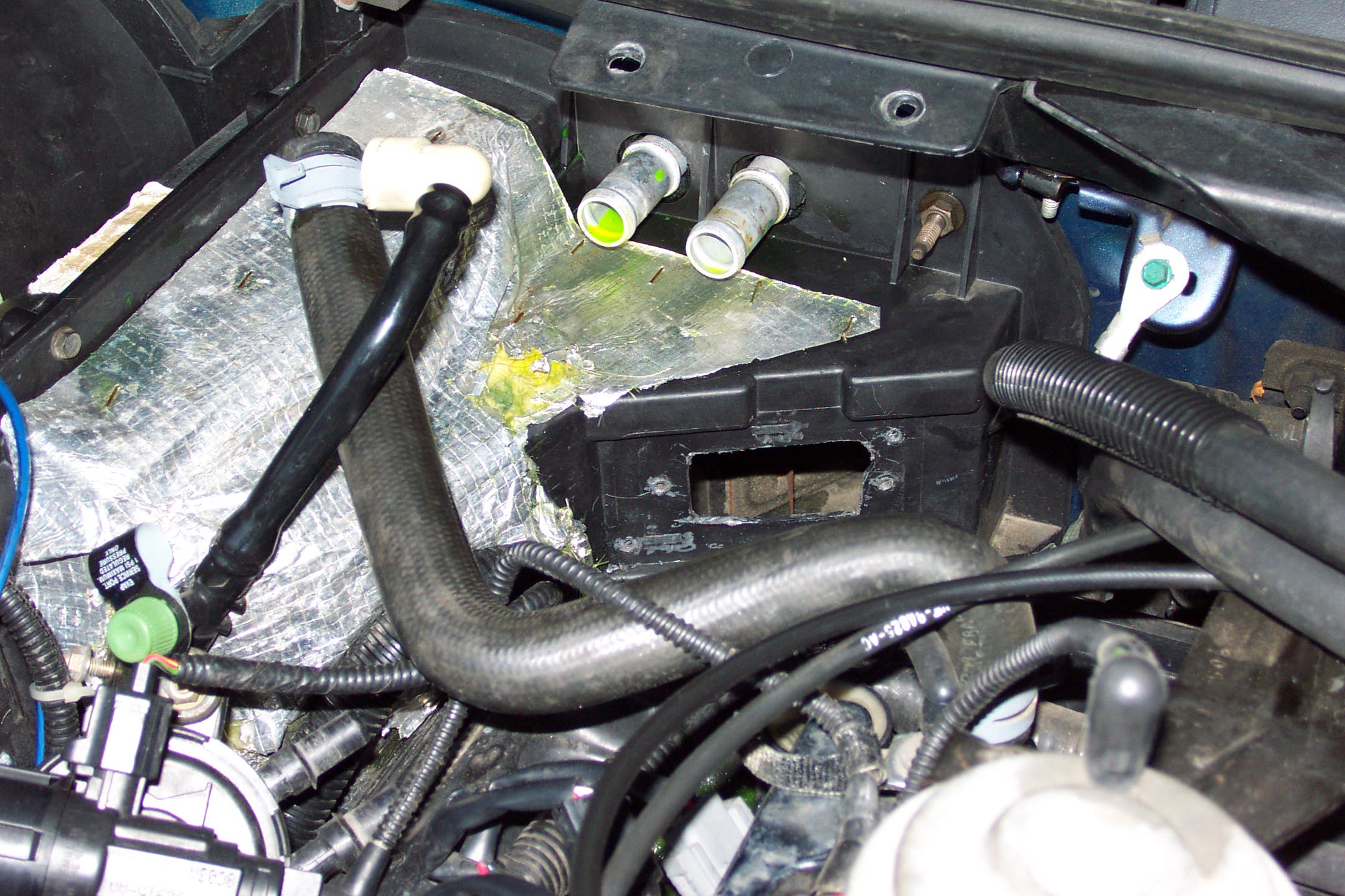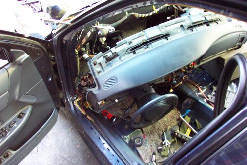 glovebox. Or you can just run 5 new wires from the blend door actuator