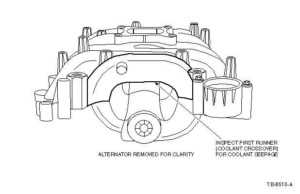 Inspect the suspect Intake Manifold for a coolant leak at the first runner cross-over area (Figure 1). If coolant seepage is found in this area, order the appropriate Service Kit and install parts, by referring to the appropriate Model Year Workshop Manual (Section 303-01).