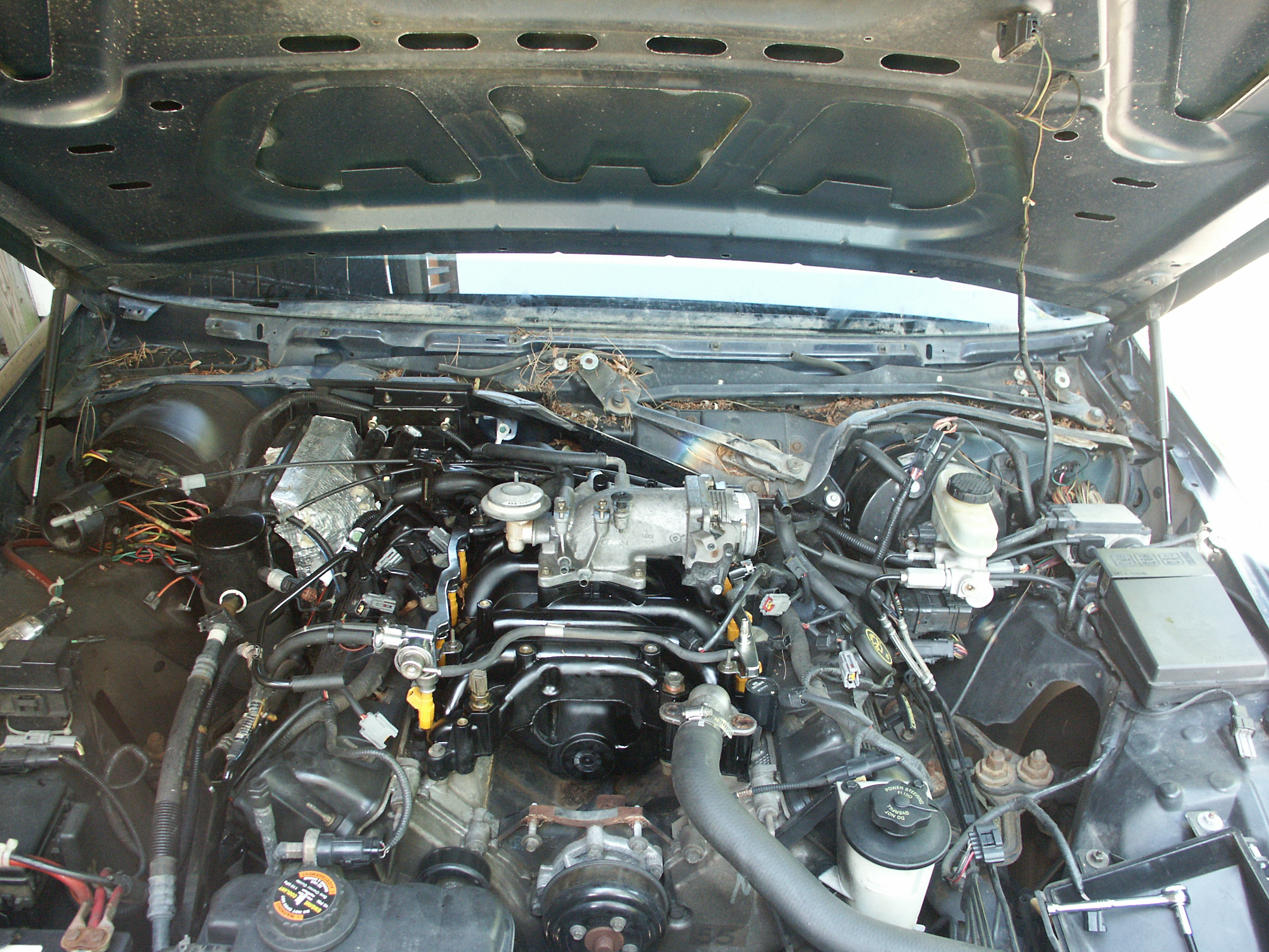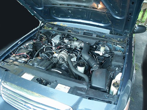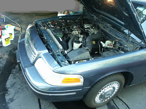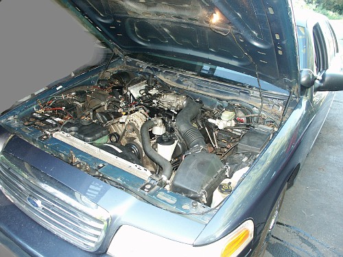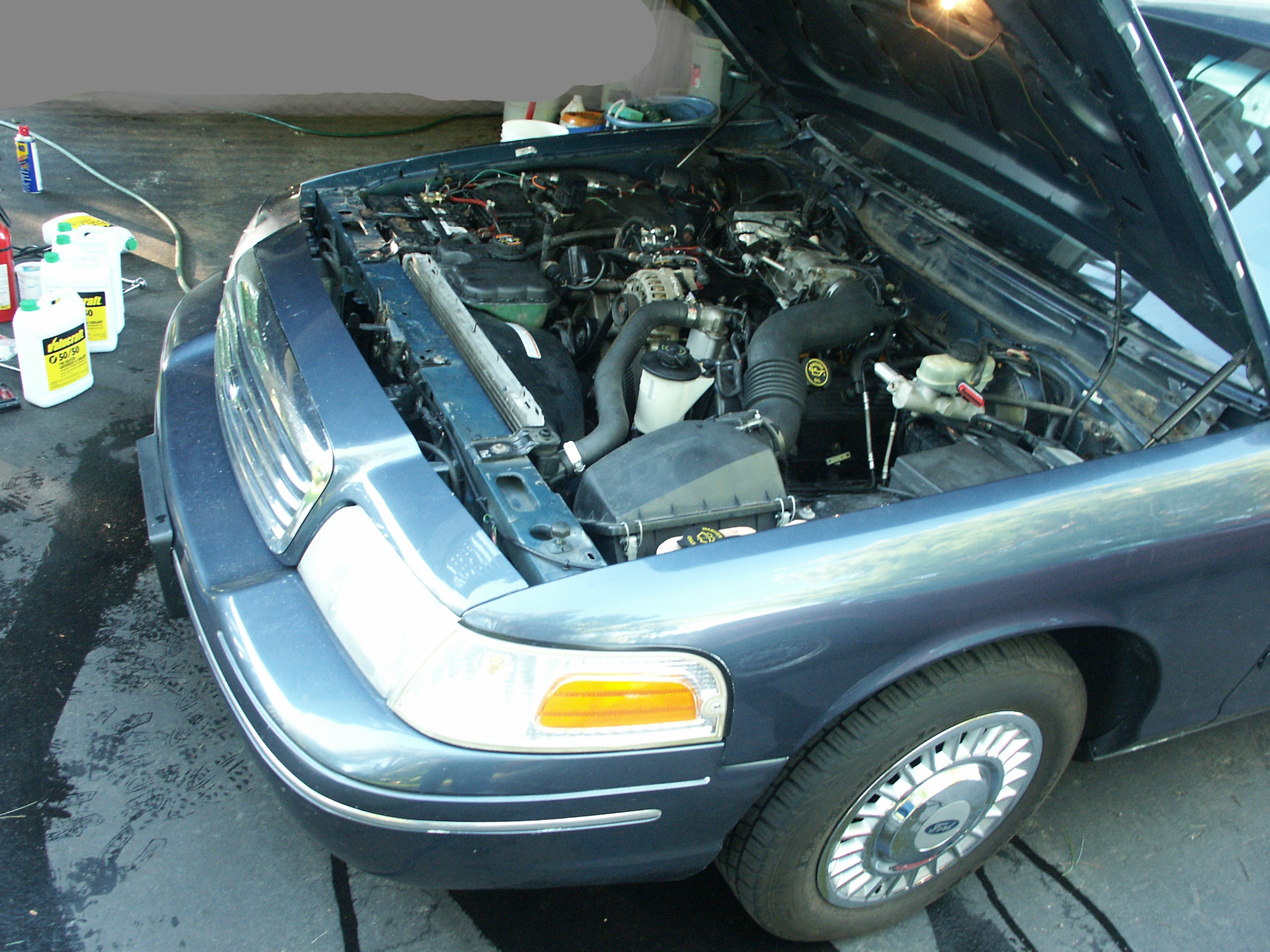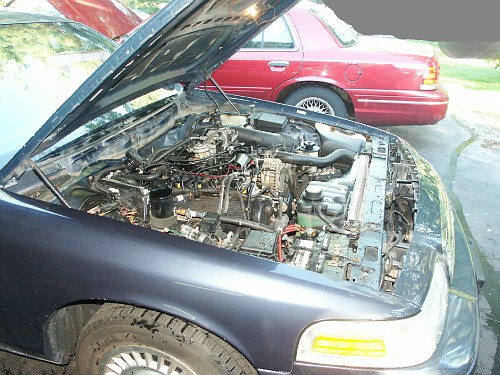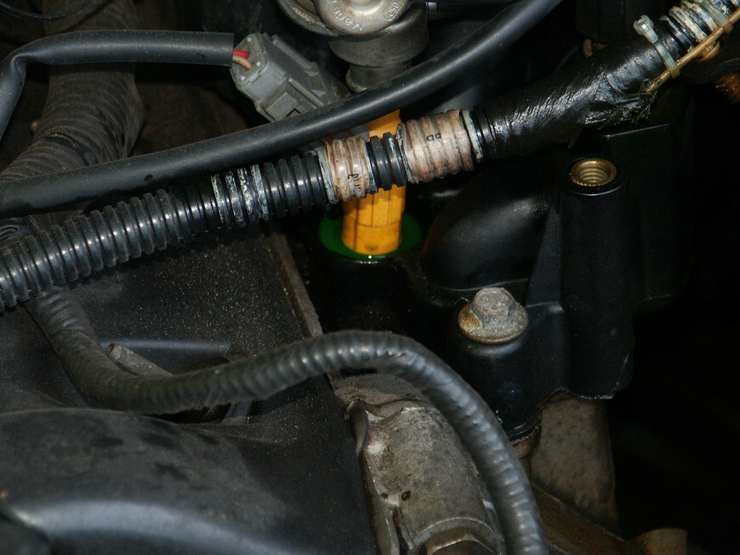 the hood opened, bright green antifreeze was in places it shouldn't be