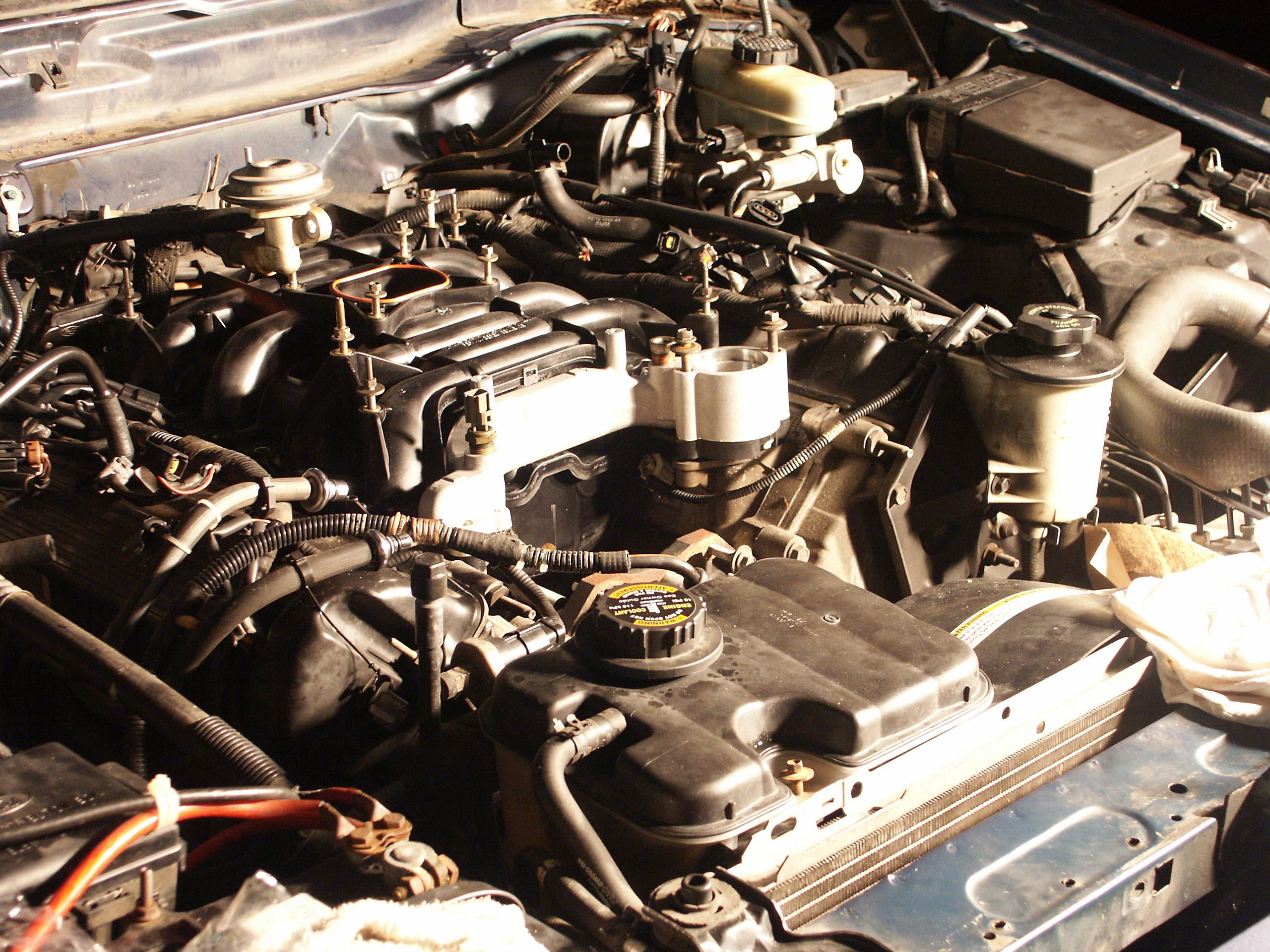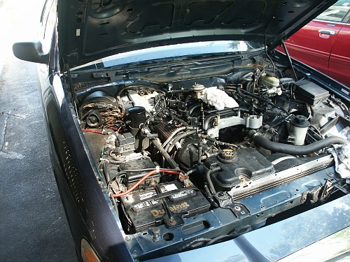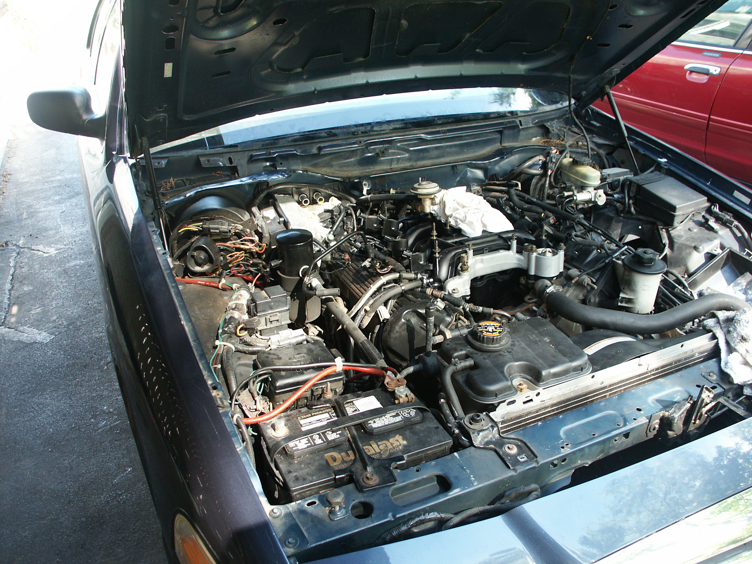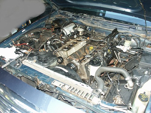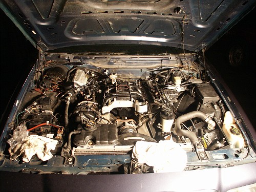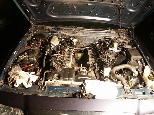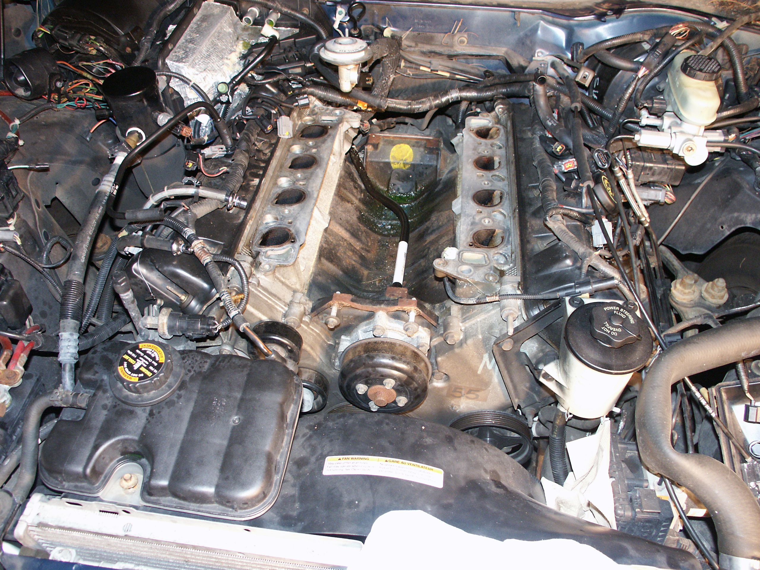 the hood opened, bright green antifreeze was in places it shouldn't be