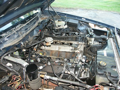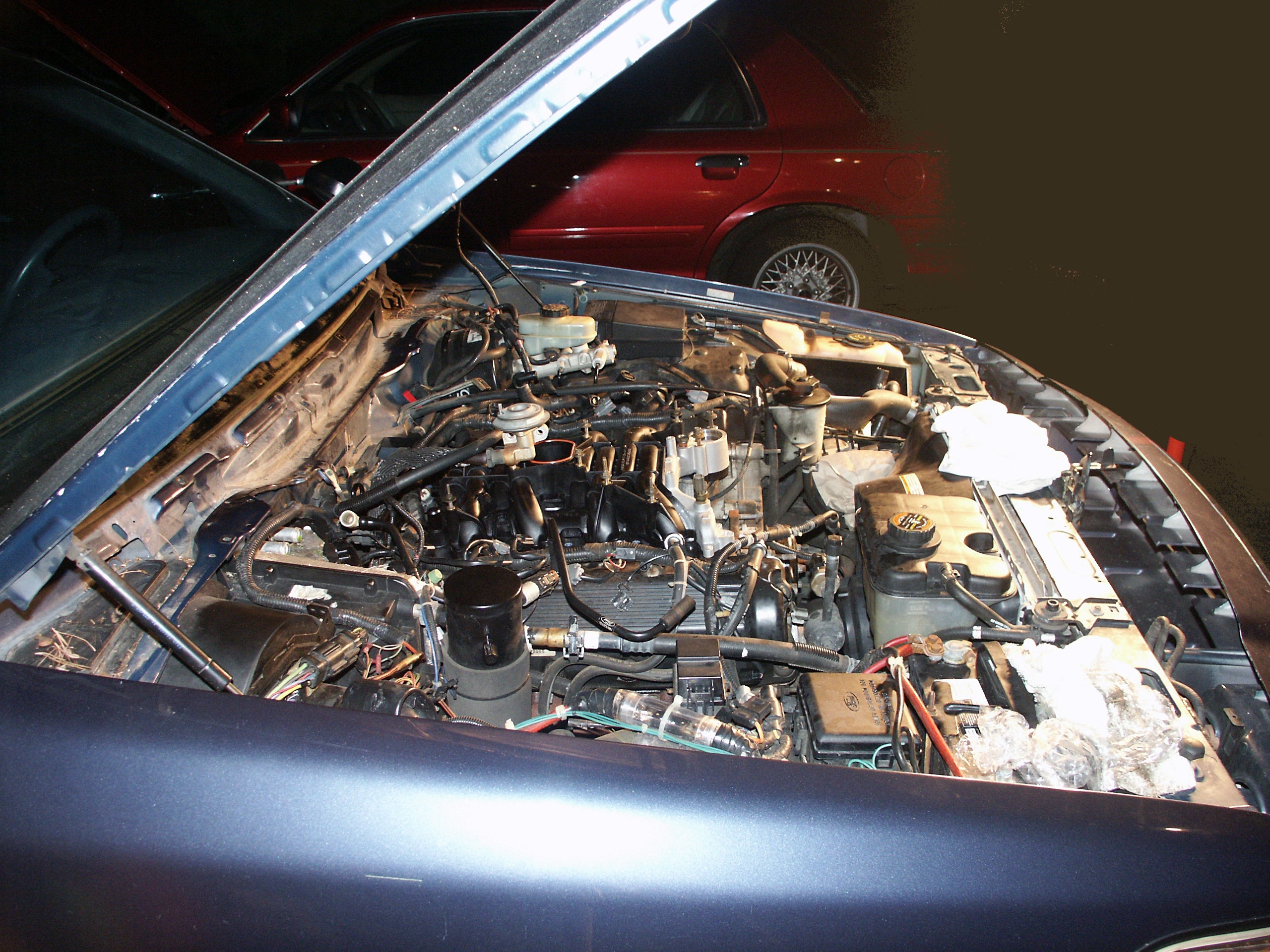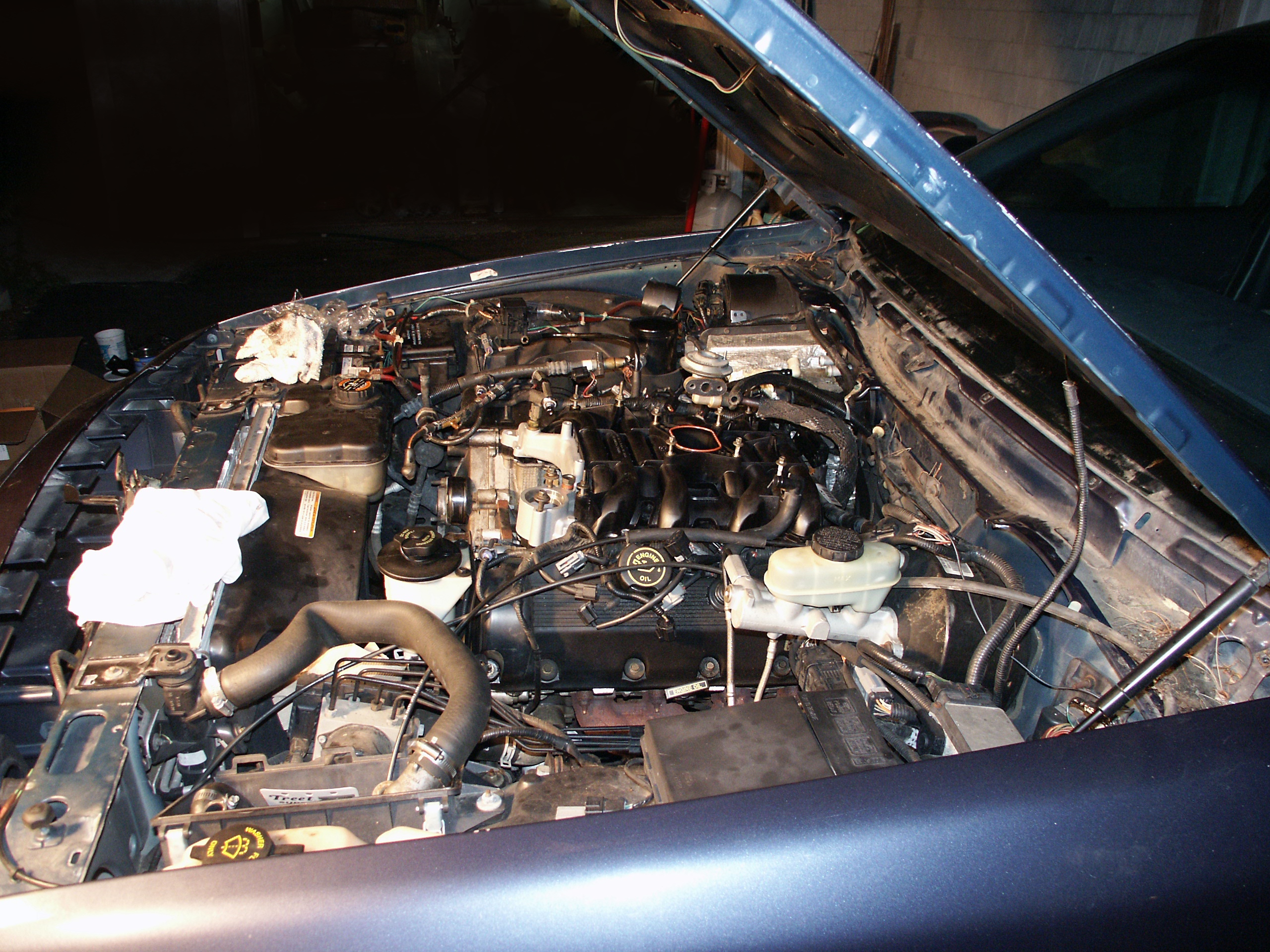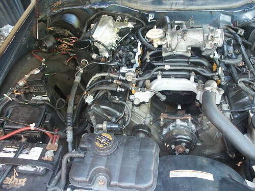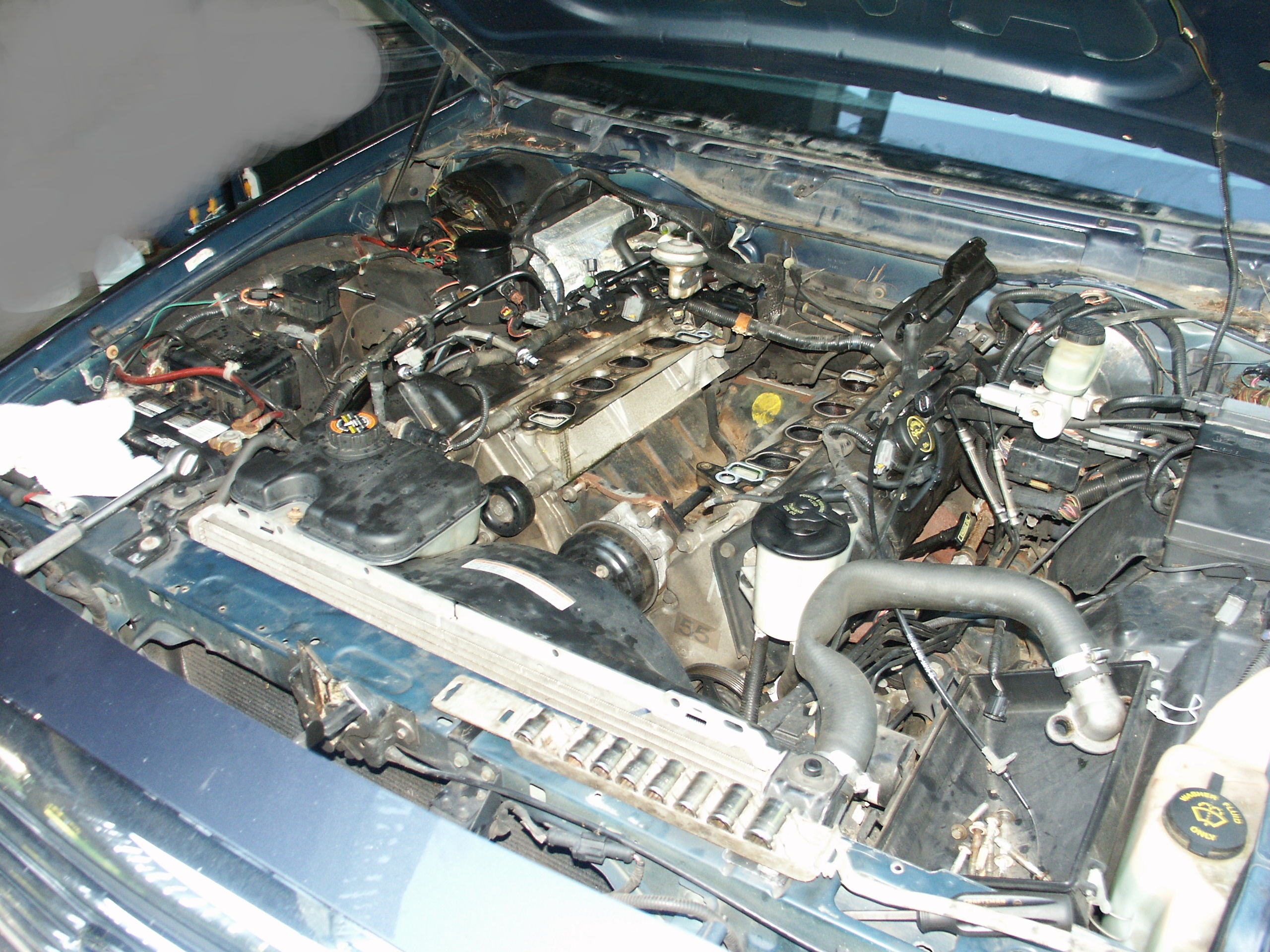 the hood opened, bright green antifreeze was in places it shouldn't be