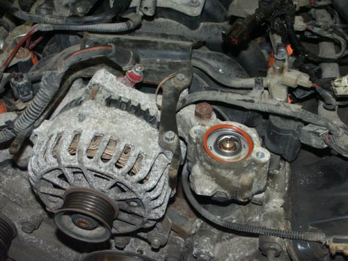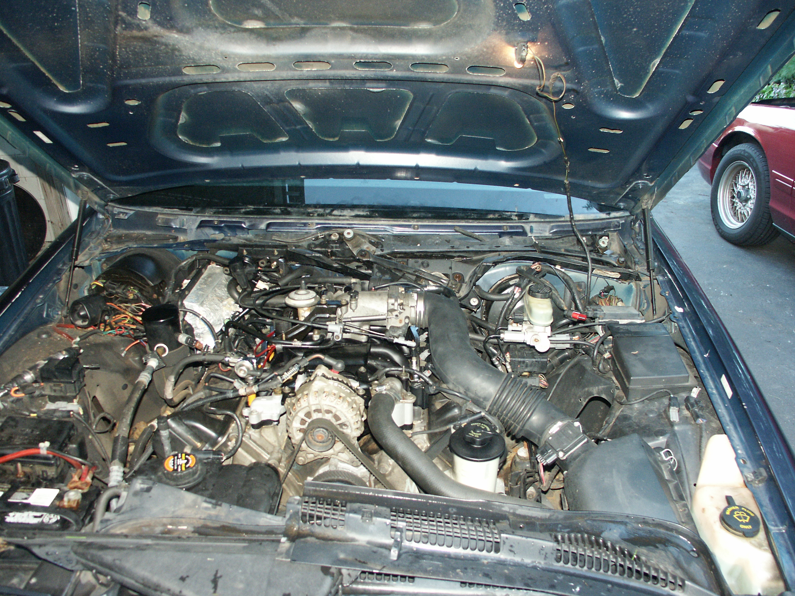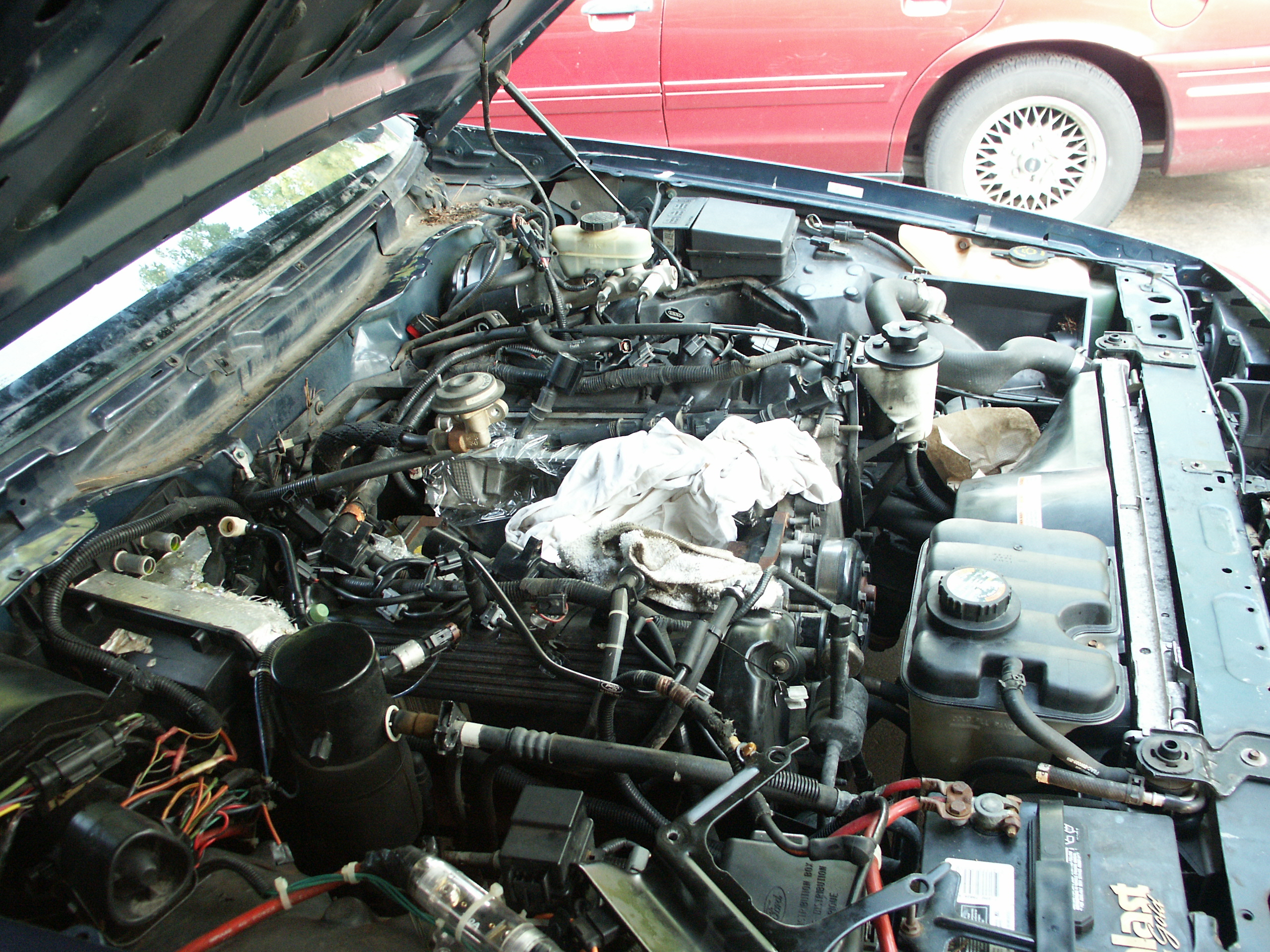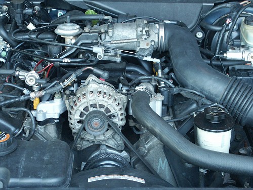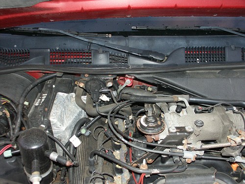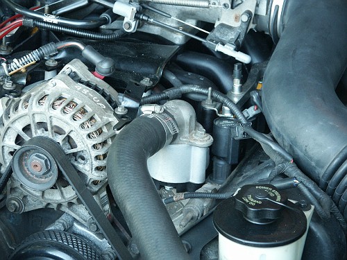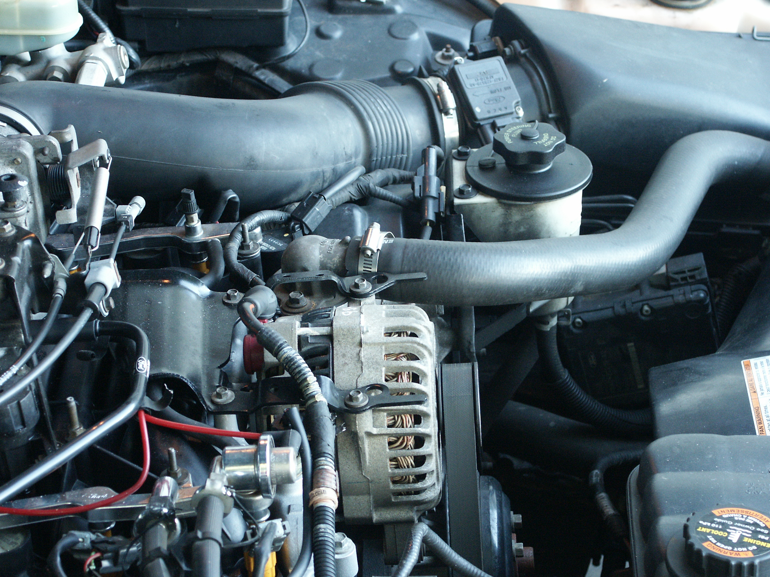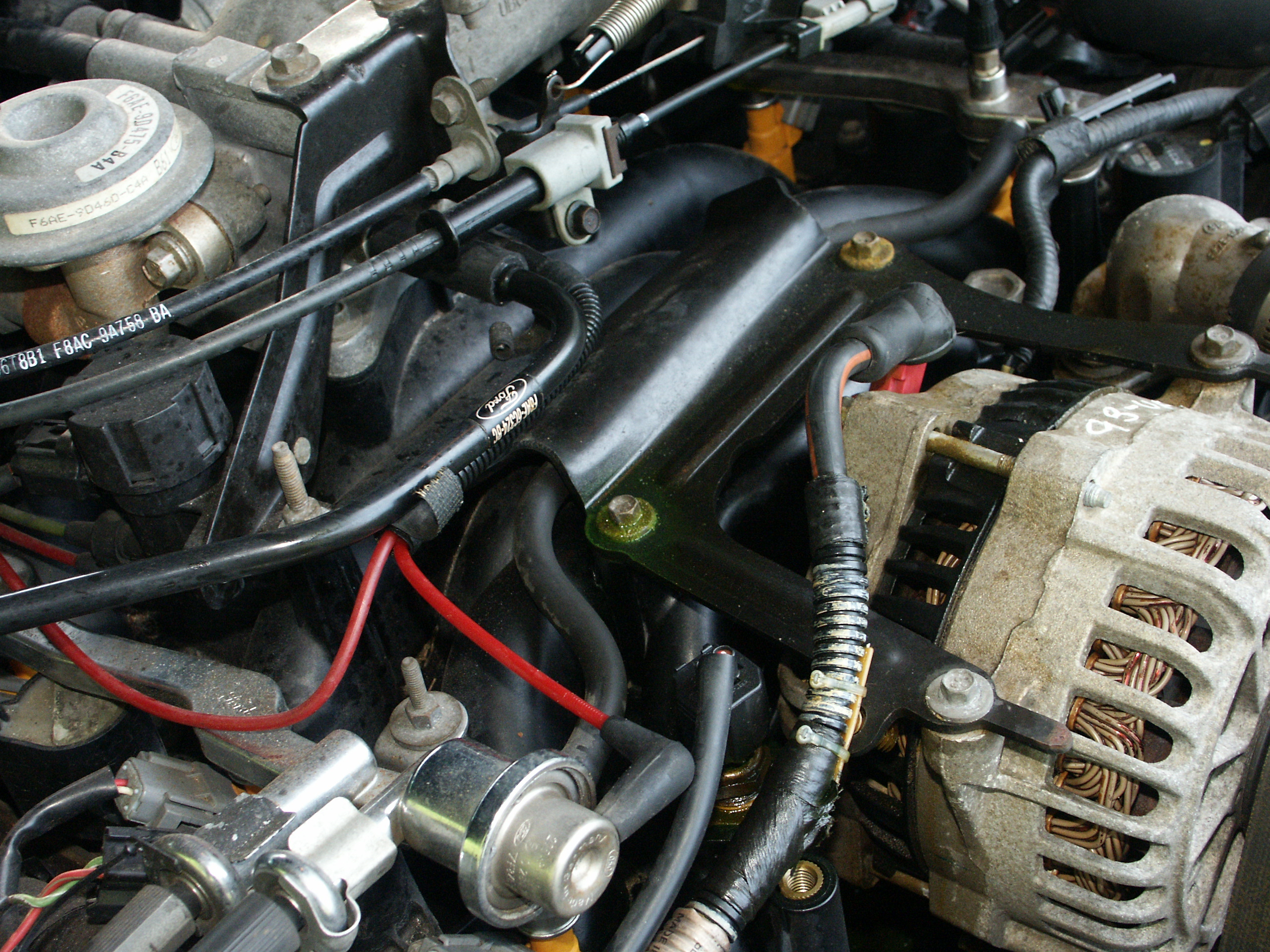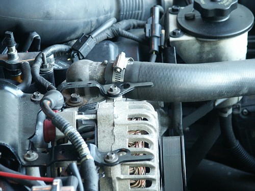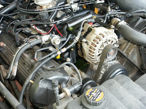 Remove alternator, cruise control cable, a couple vacuum harnesses, air