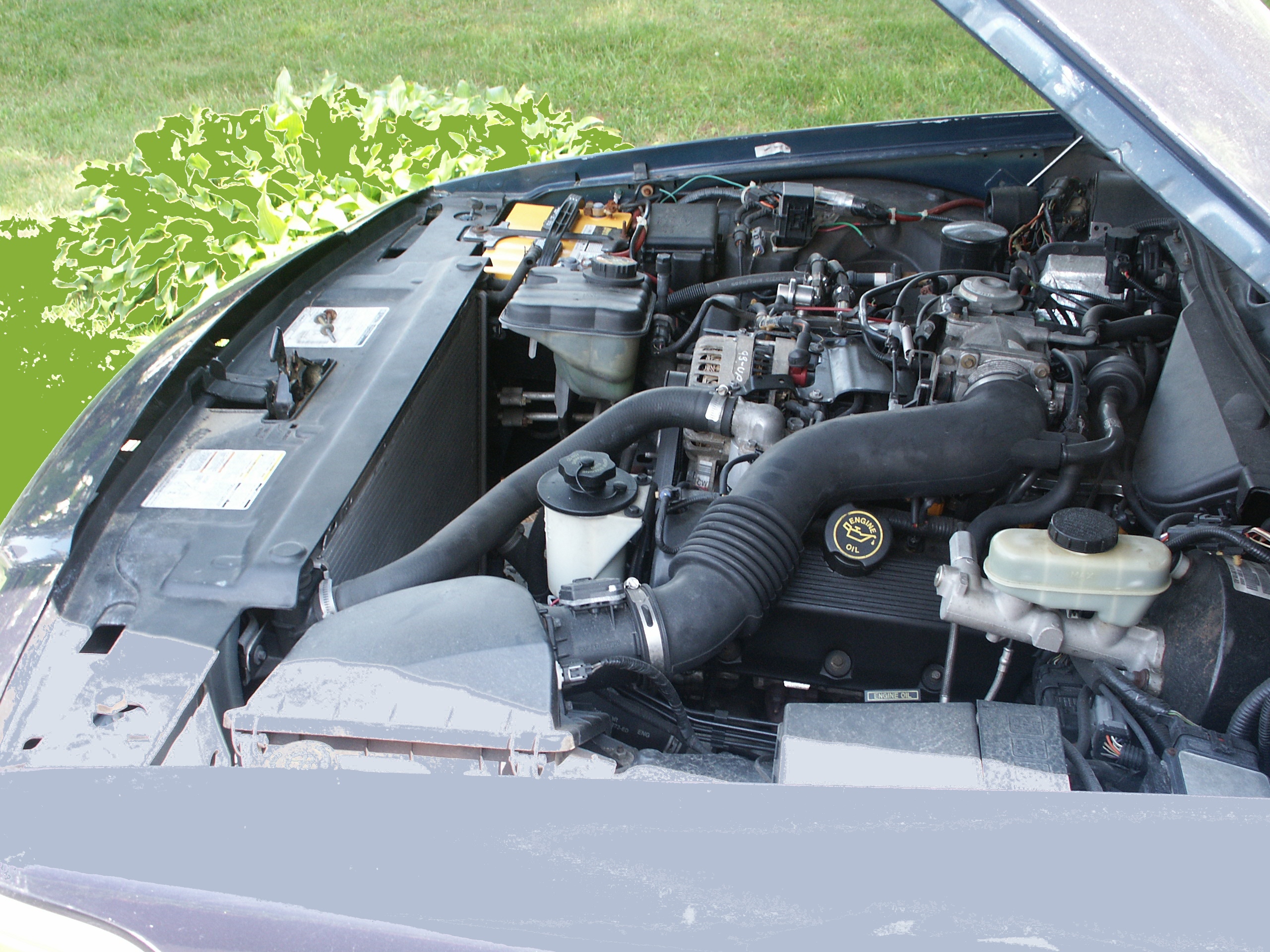 The first step is to open the hood and pull out the electric fan shroud