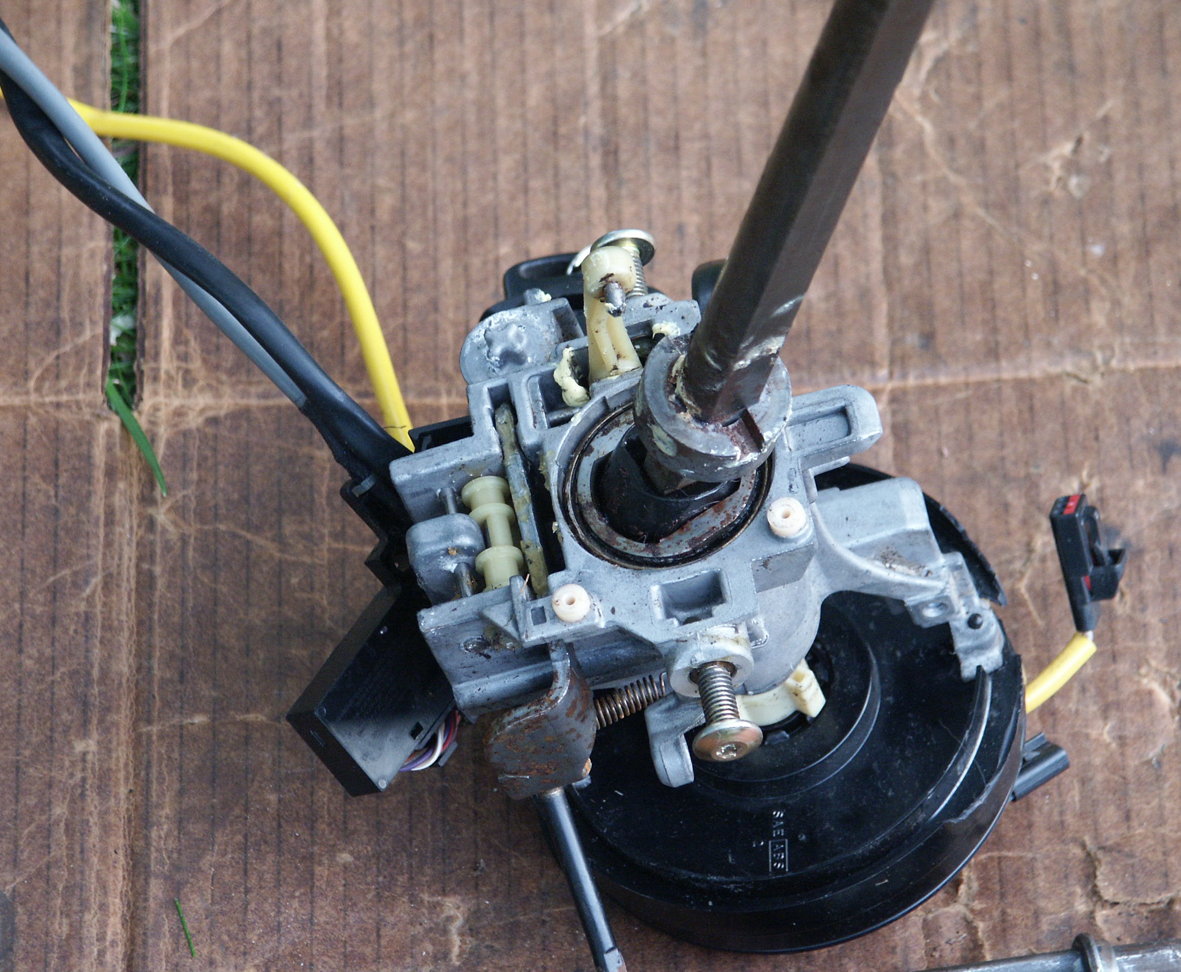 And the steering column with the steering wheel removed