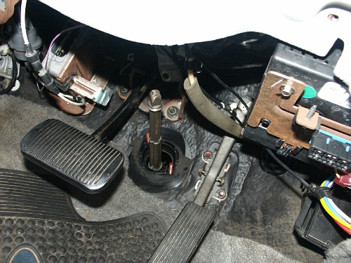 First remove the pinch bolt for the steering shafts, then the two nuts