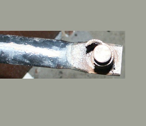 A closeup of the idler arm knurl area. When the knurls strip off, one
