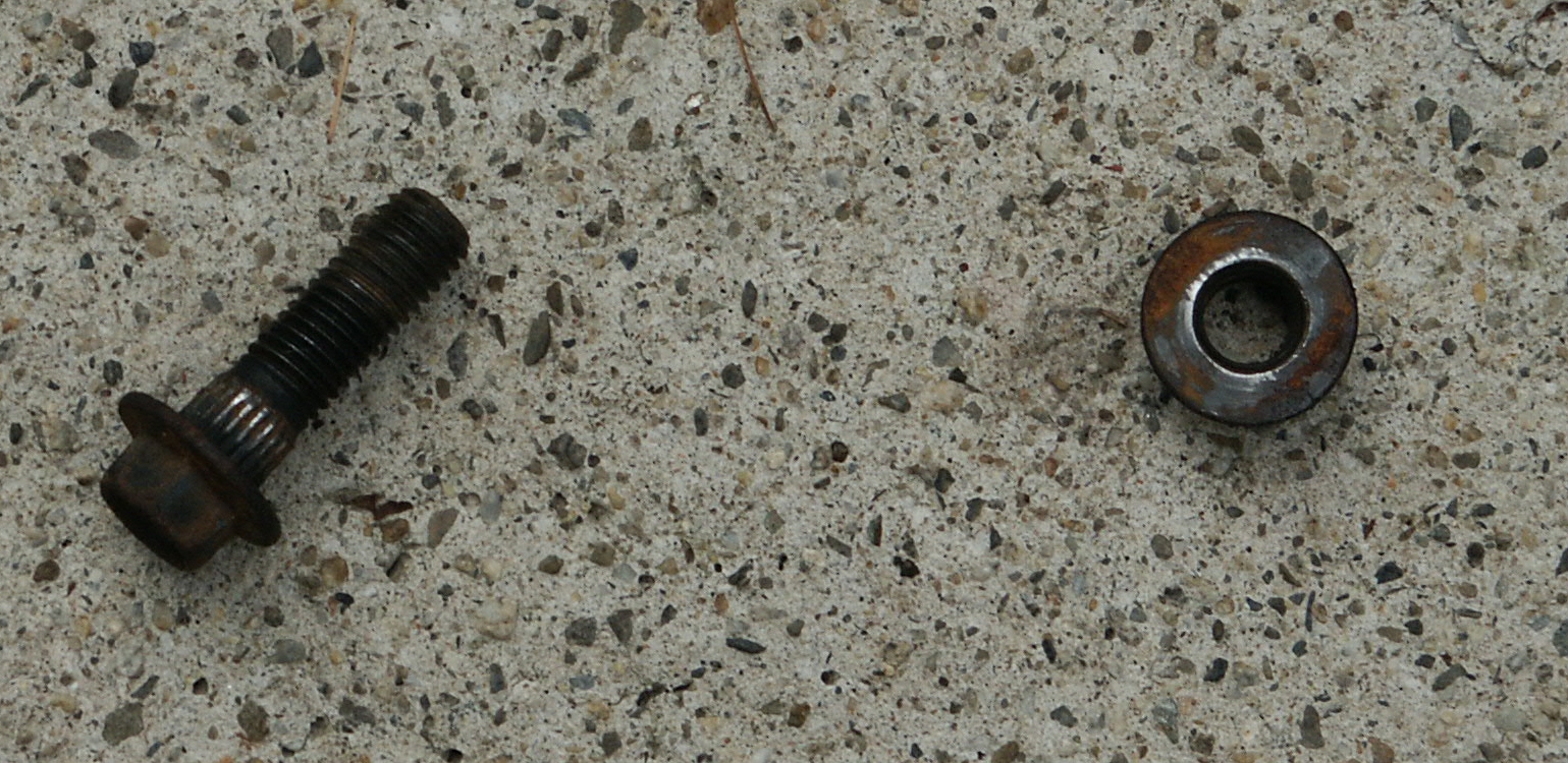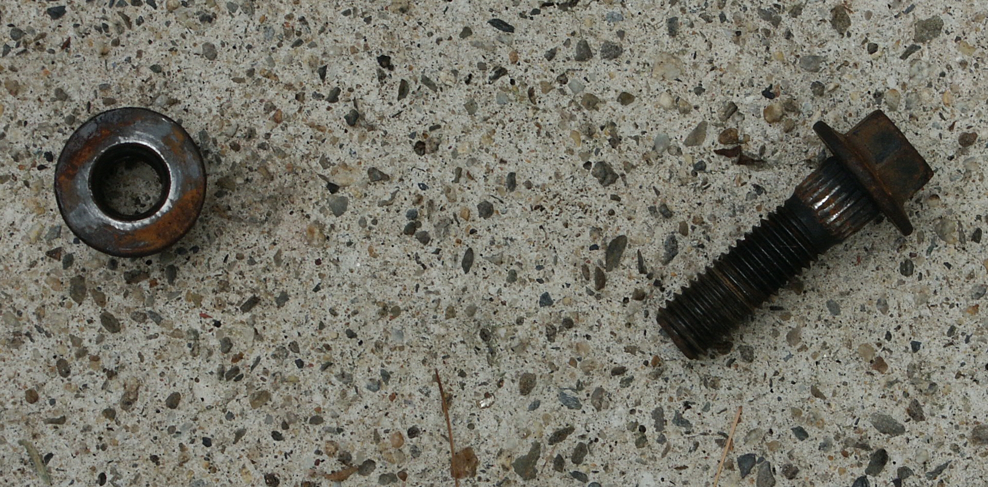 The remainder of the stubborn idler arm sleeve is finally removed from