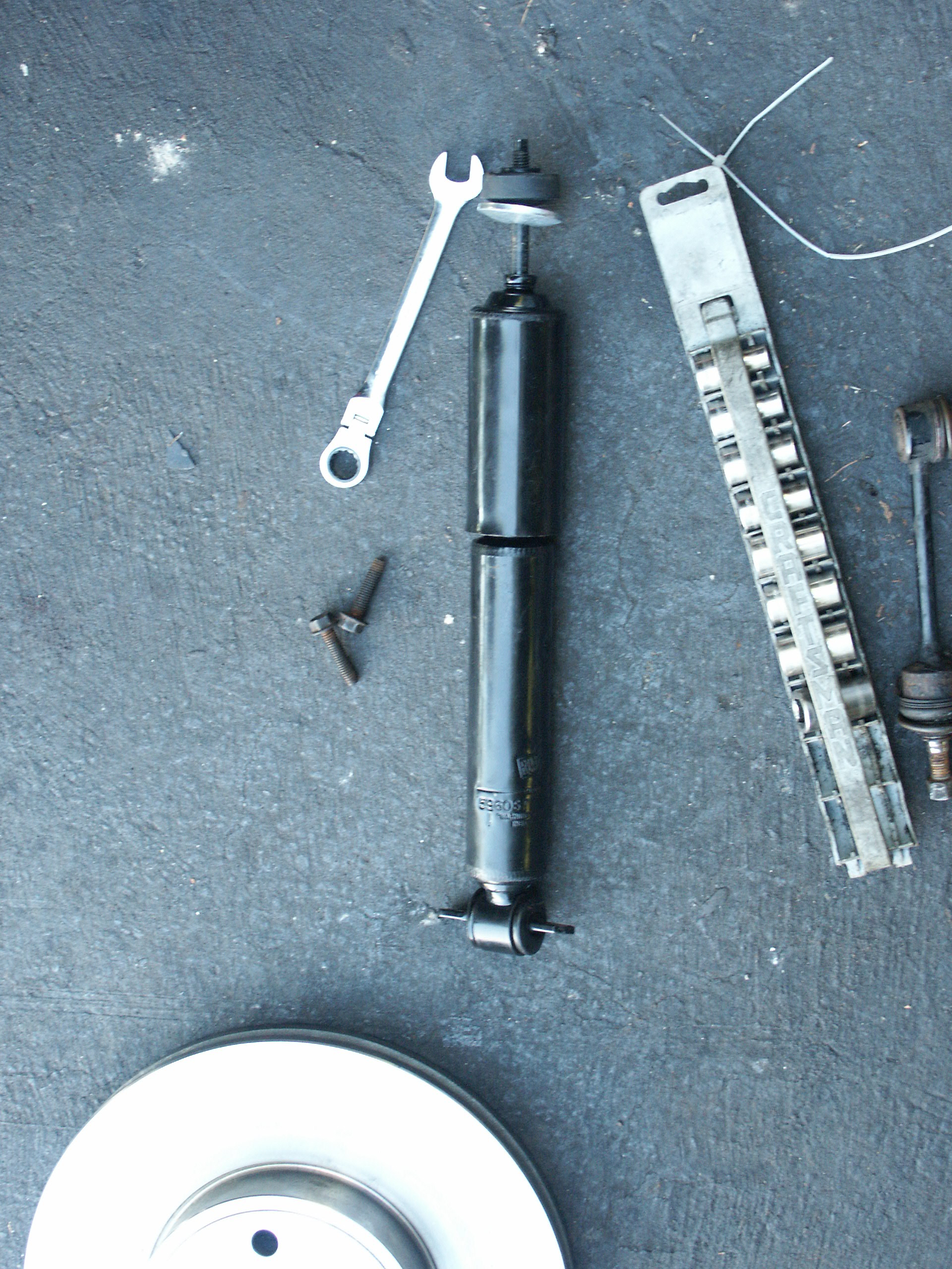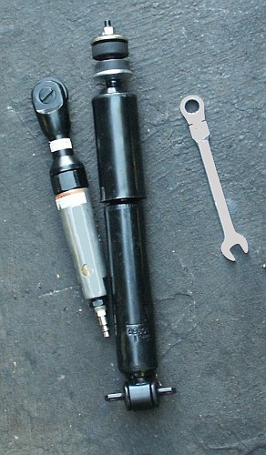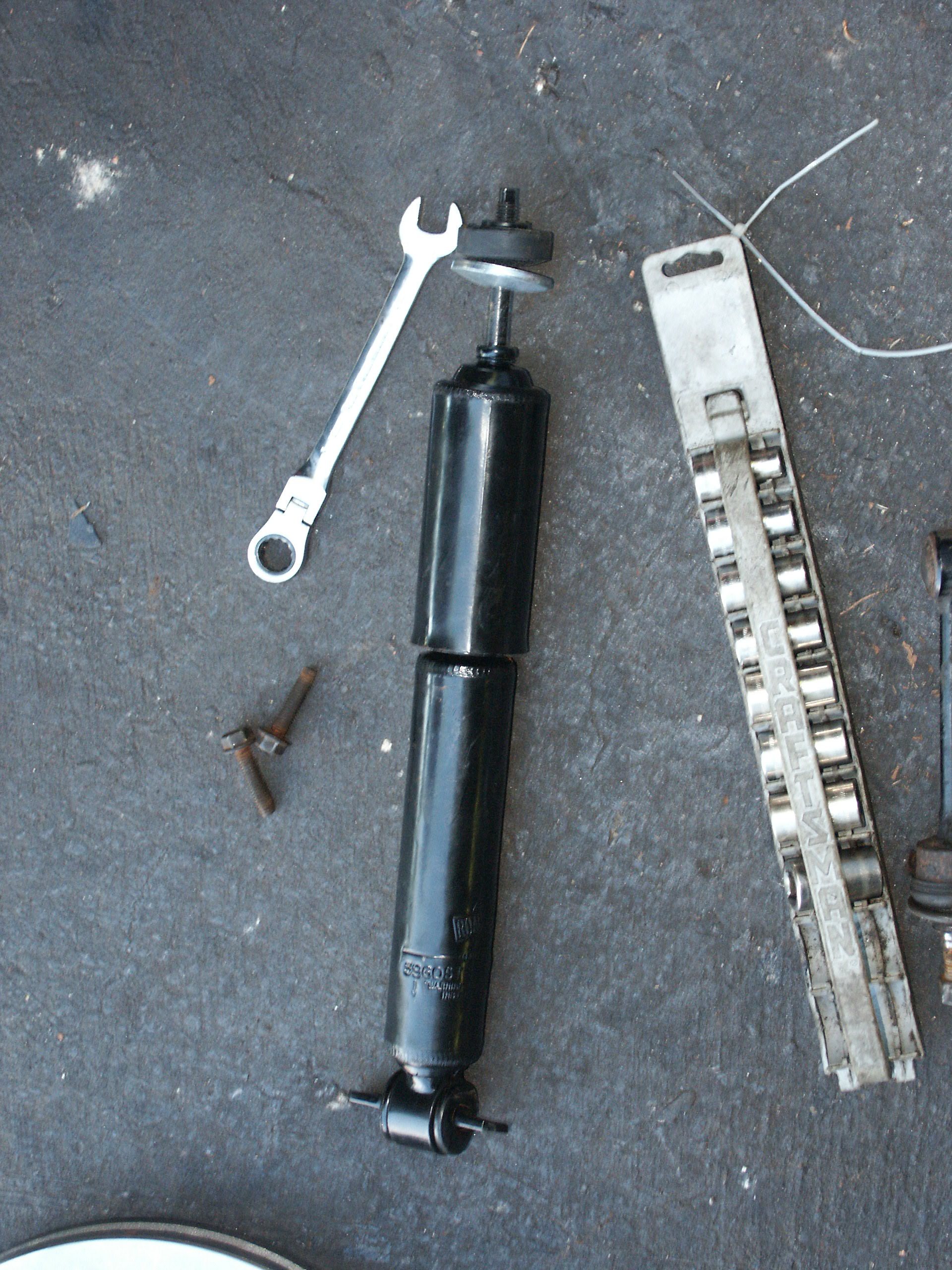 -snap off the top shock absorber stud by rocking back/forth repeatedly