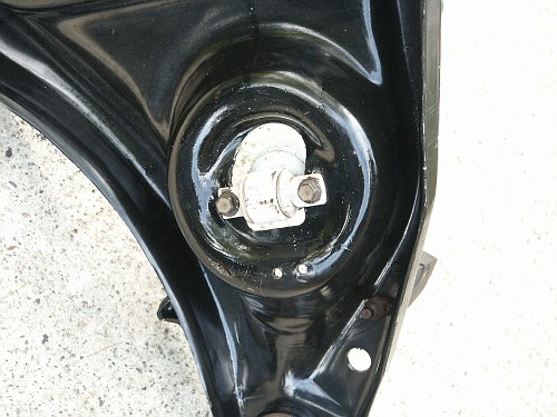 absorber rubber bushing against the frame so that the stud doesn't spin