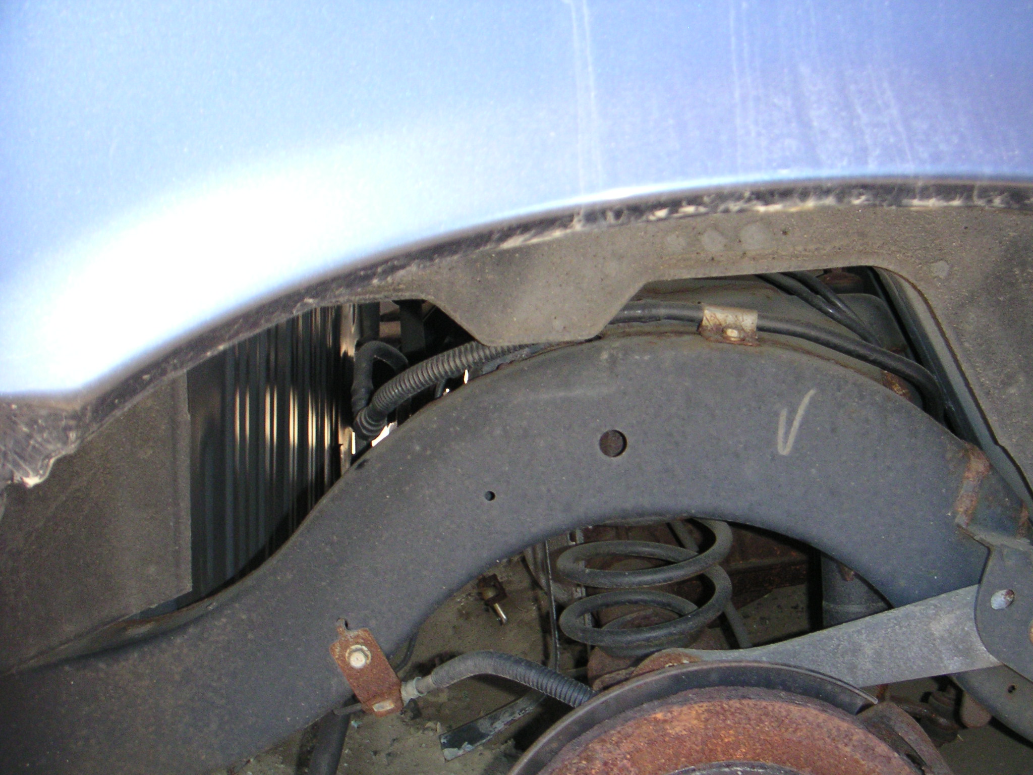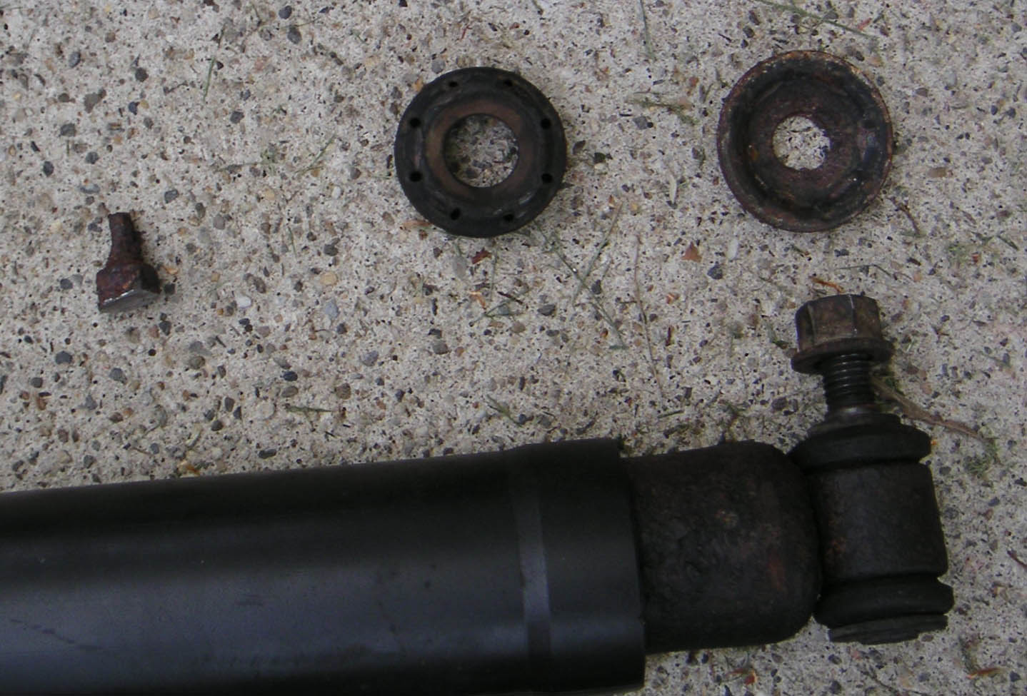The passenger rear shock absorber on this vehicle was severly worn. The