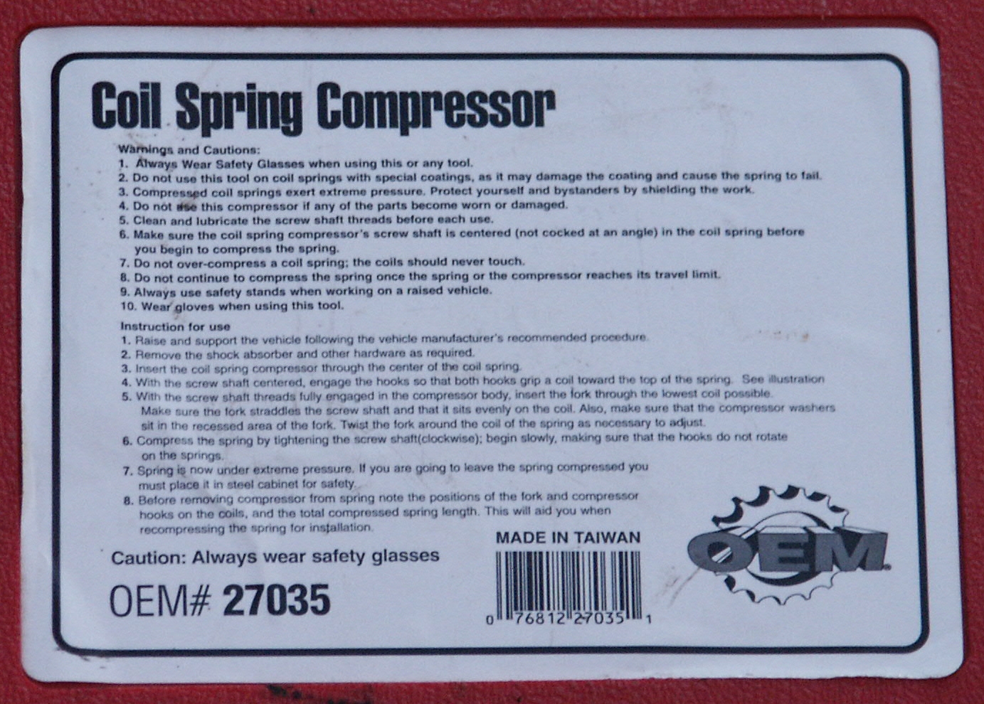 Unfortunately, the u-shaped clips on the coil spring compressor aren't