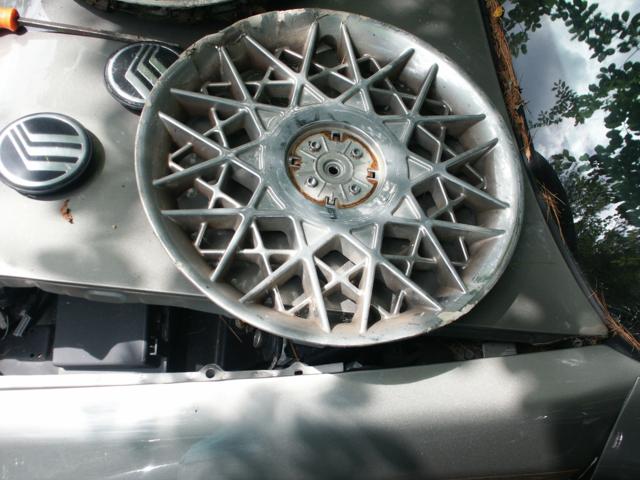 The car had locking hubcaps. Luckily, the key to remove them was in the