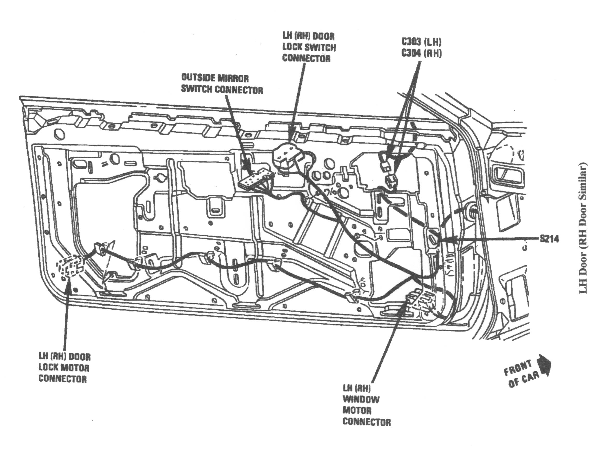 The wiring runs from the back of the door to the front of the door and then through the rubber boot and inside the vehicle under the dash. on models without any power options in the doors, there will be a black plastic plug on the door and one on the body of the car where the rubber boot would go.