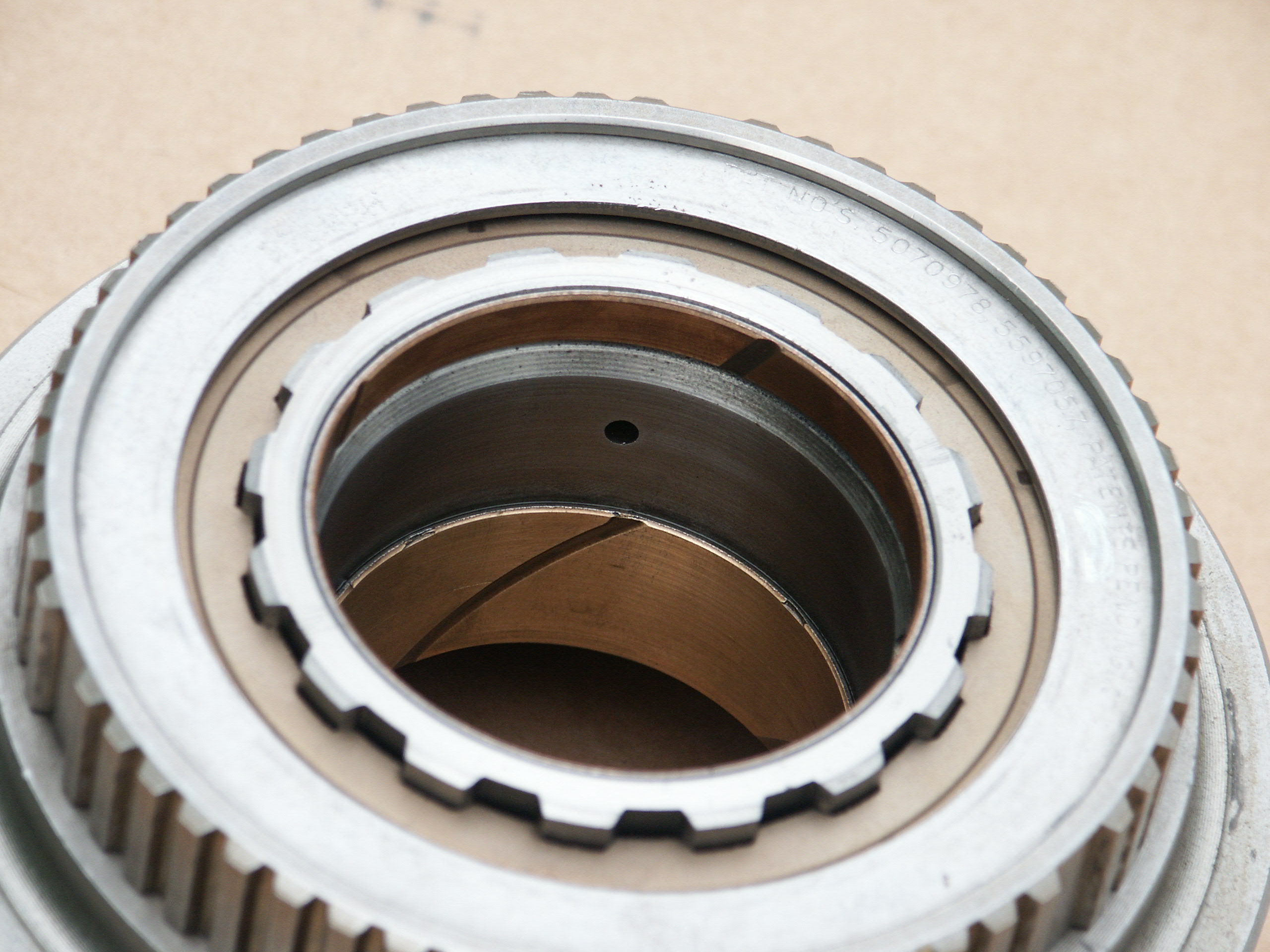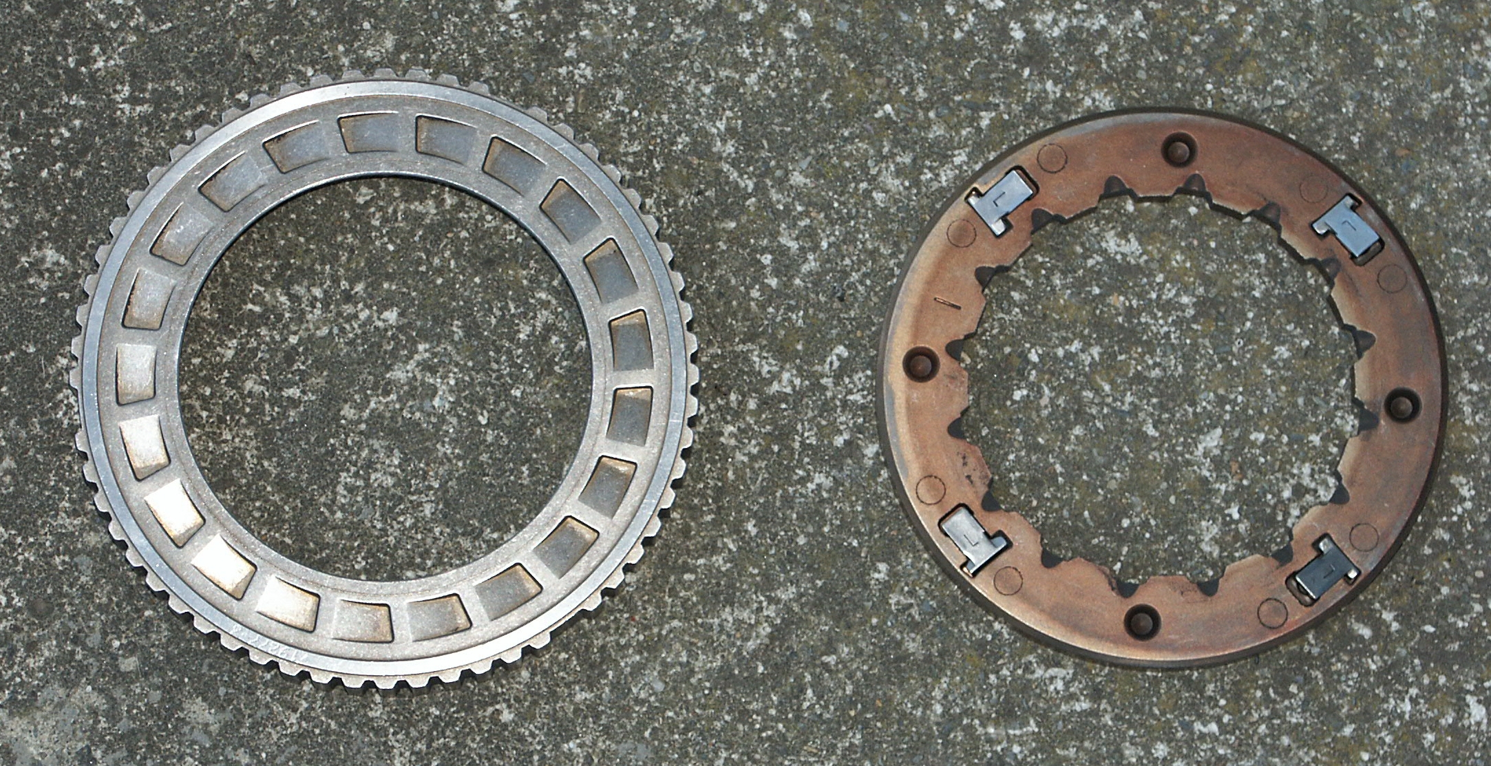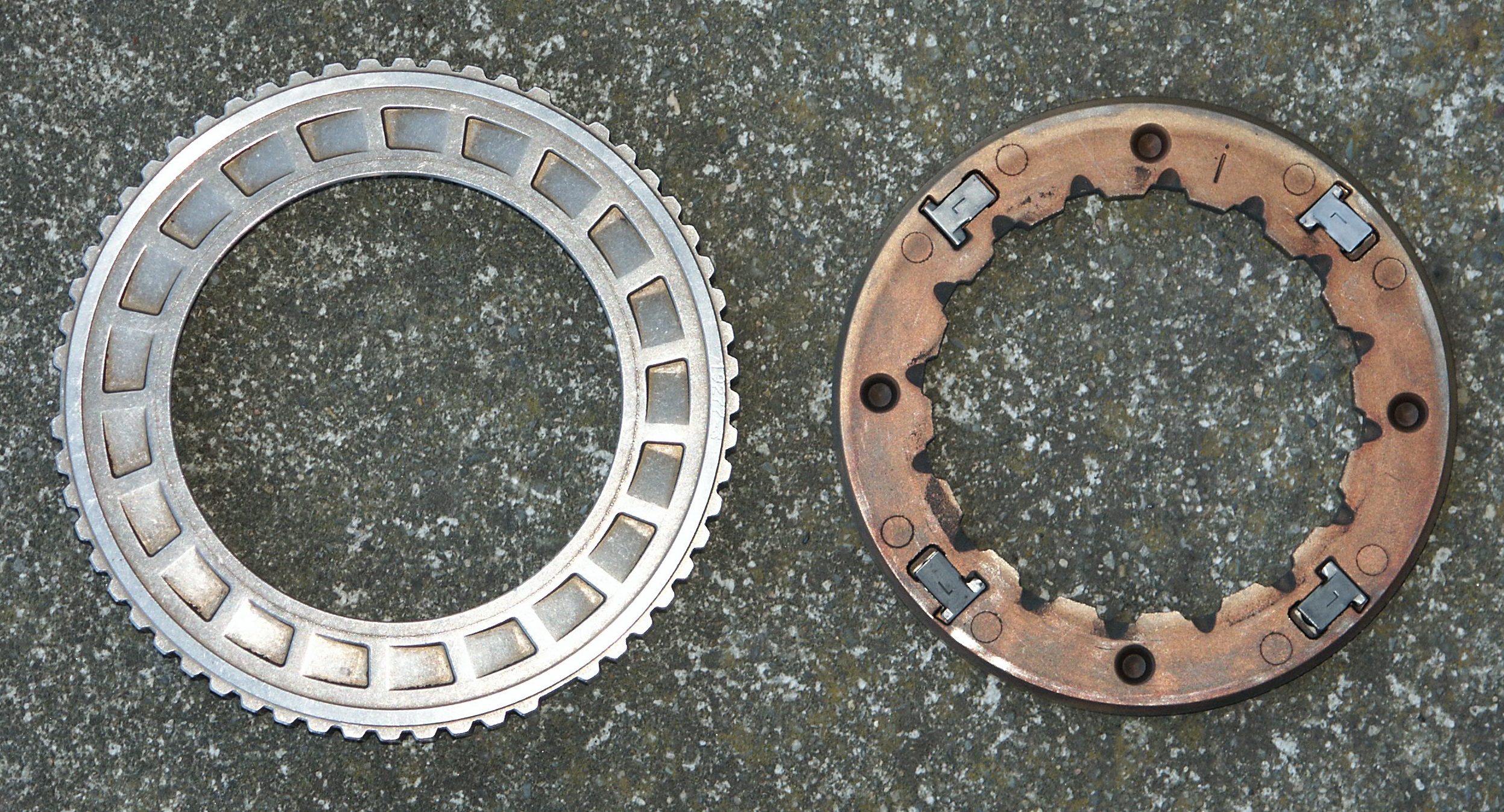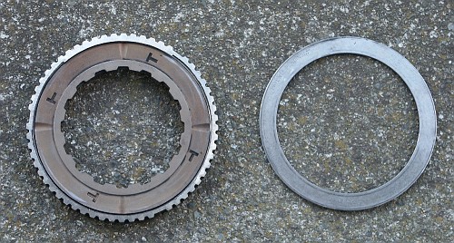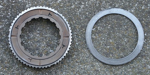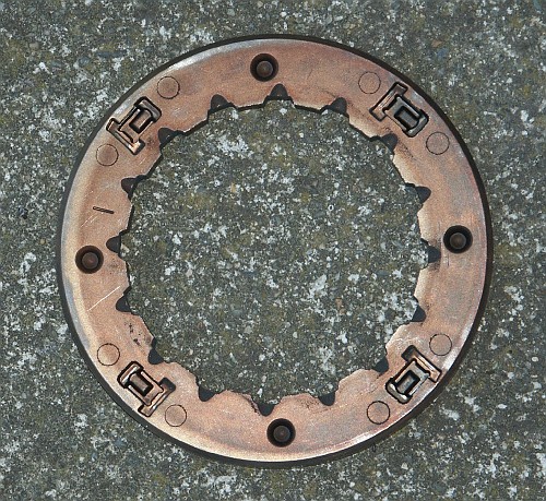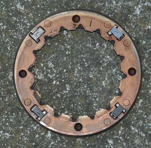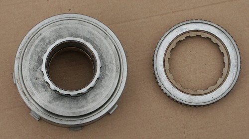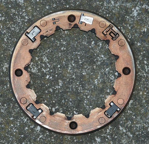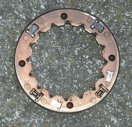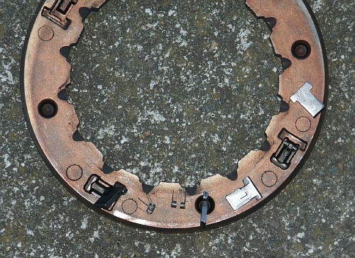 Here's the clutch assembly after grinding away the retaining ring. This