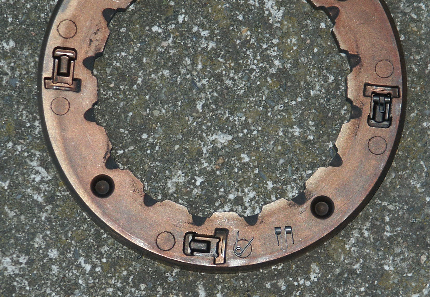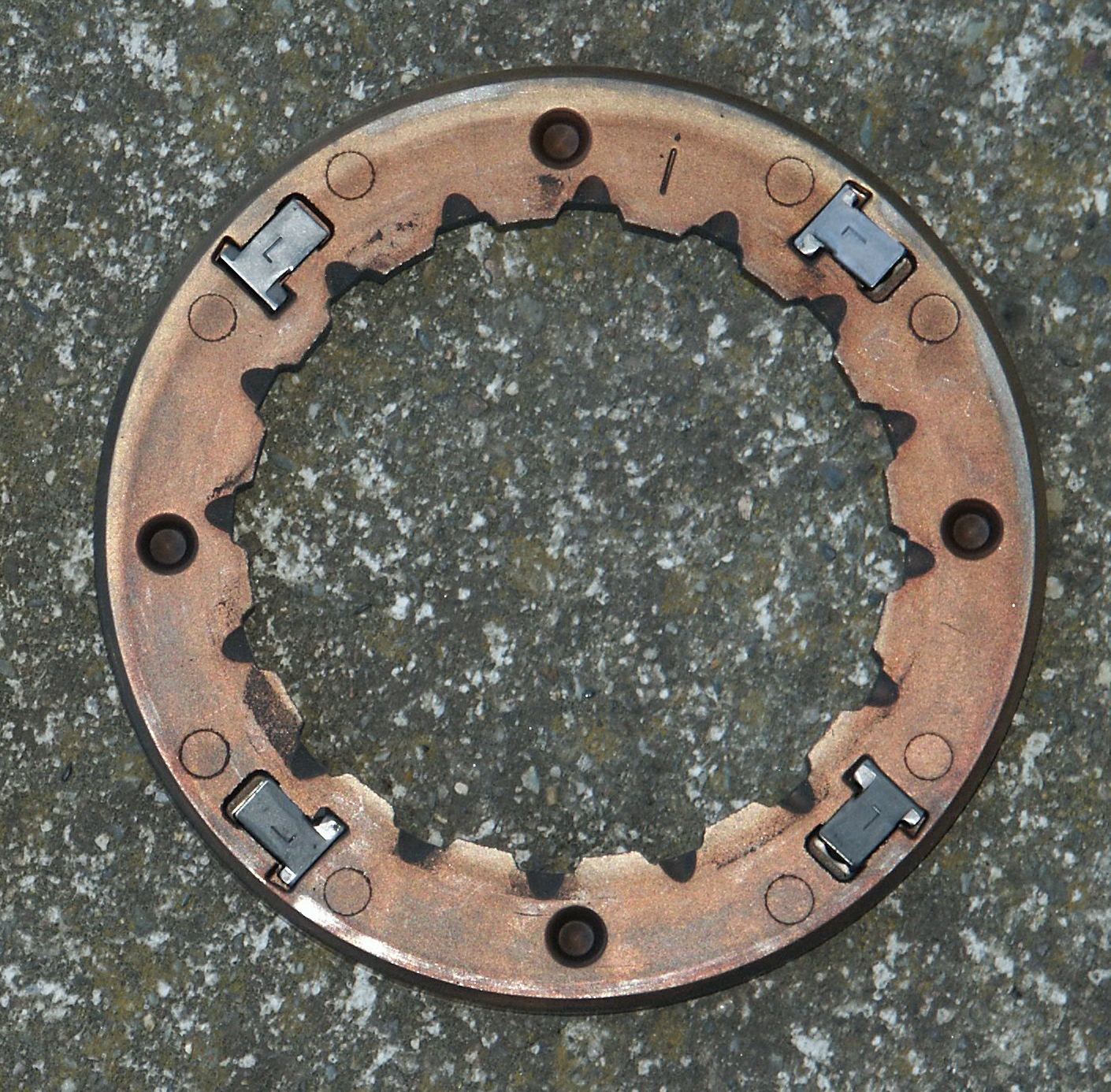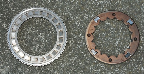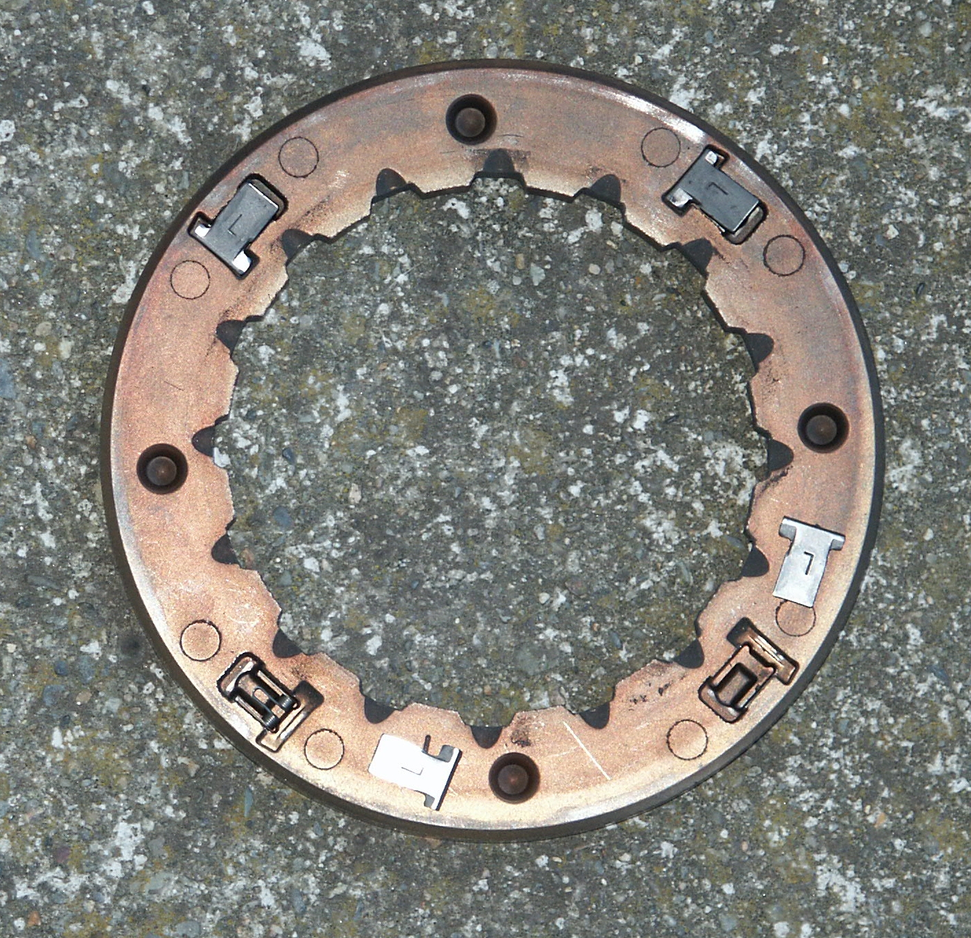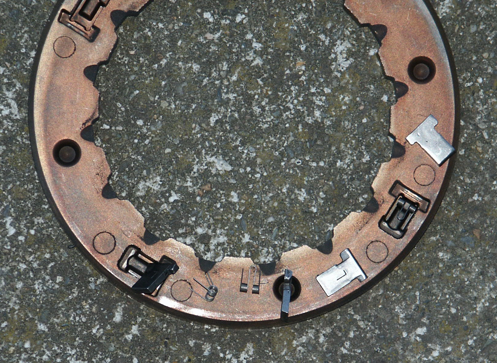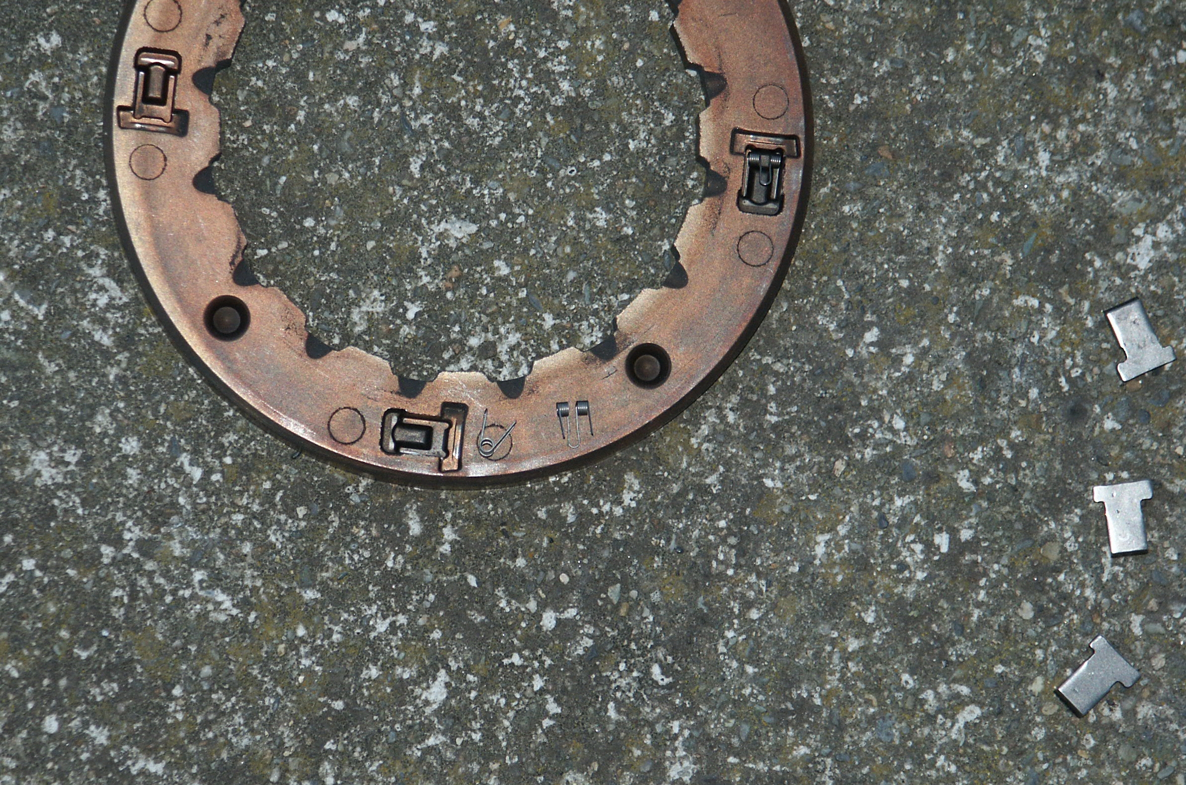 Here's the inside of the clutch. The metal tangs are spring loaded.