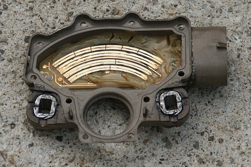 Here's the mlps sensor with the rivets drilled out and the cover lifted