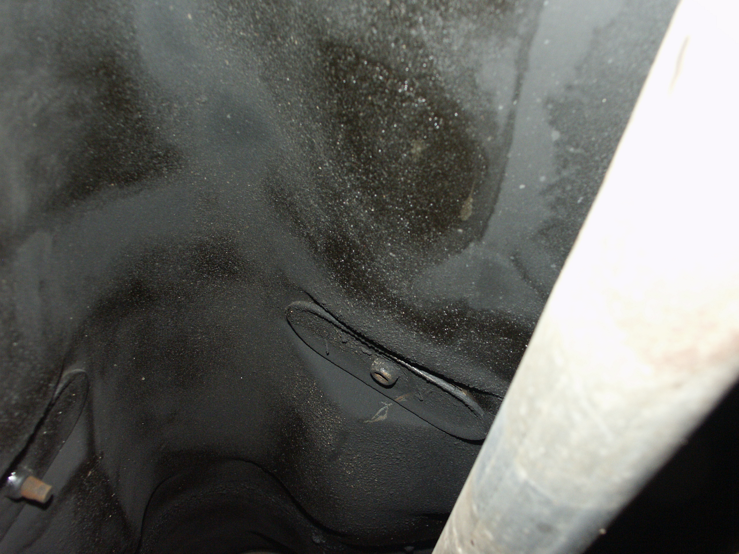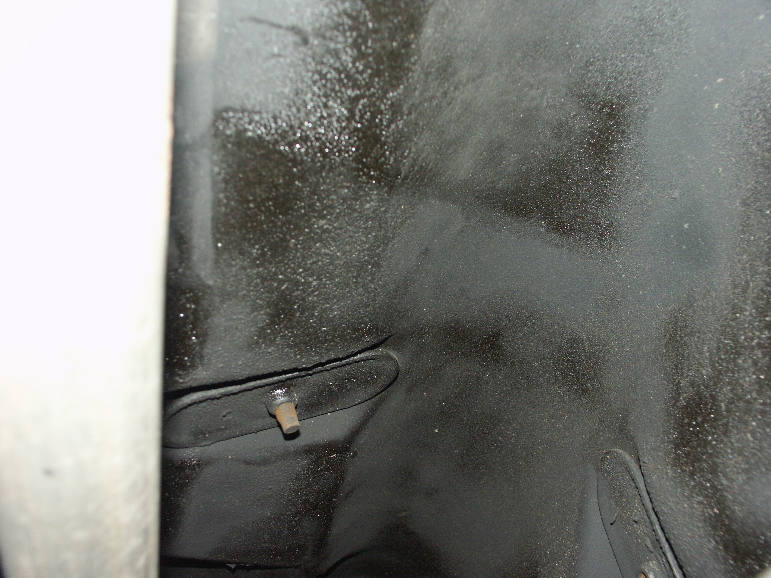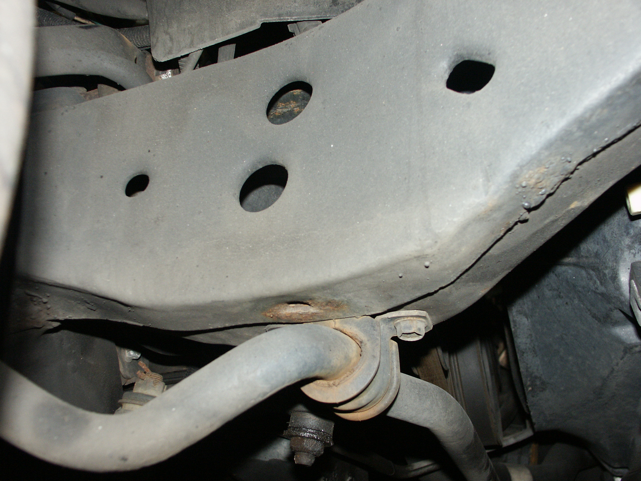 A closeup of the holes in the passenger front frame rail that you can