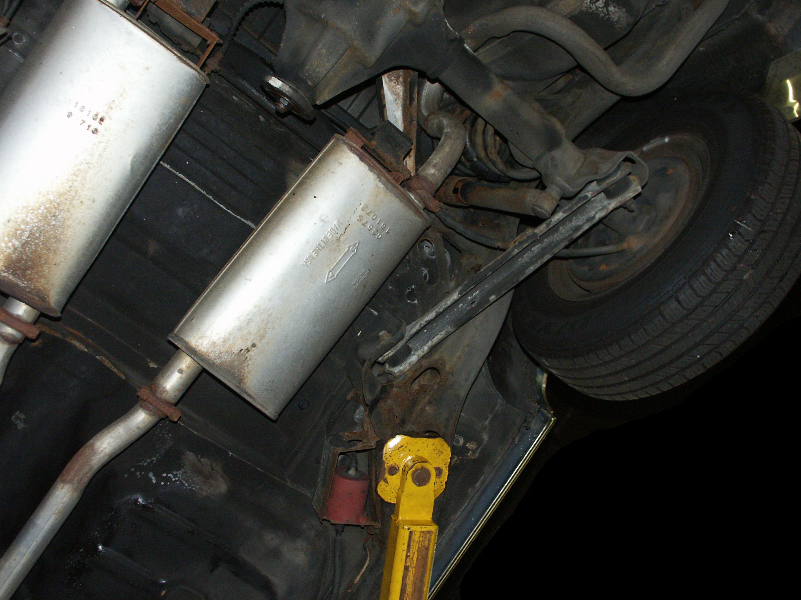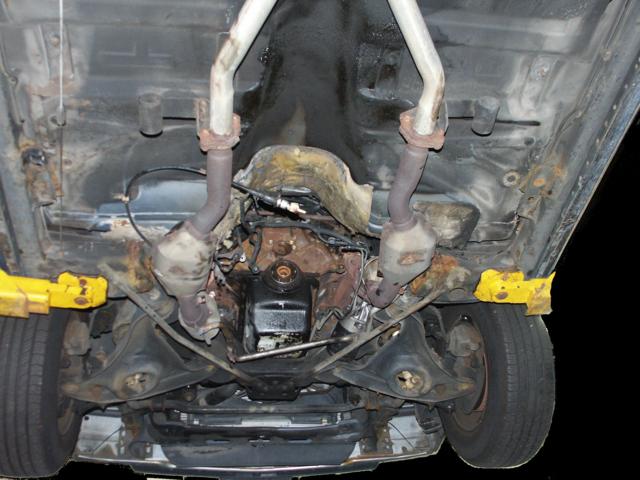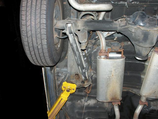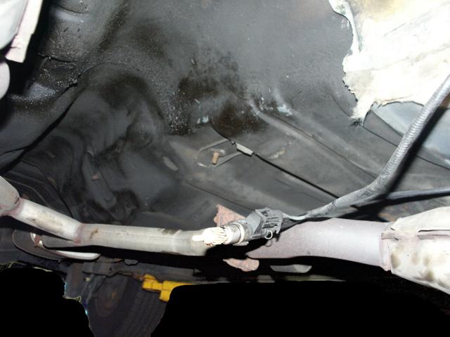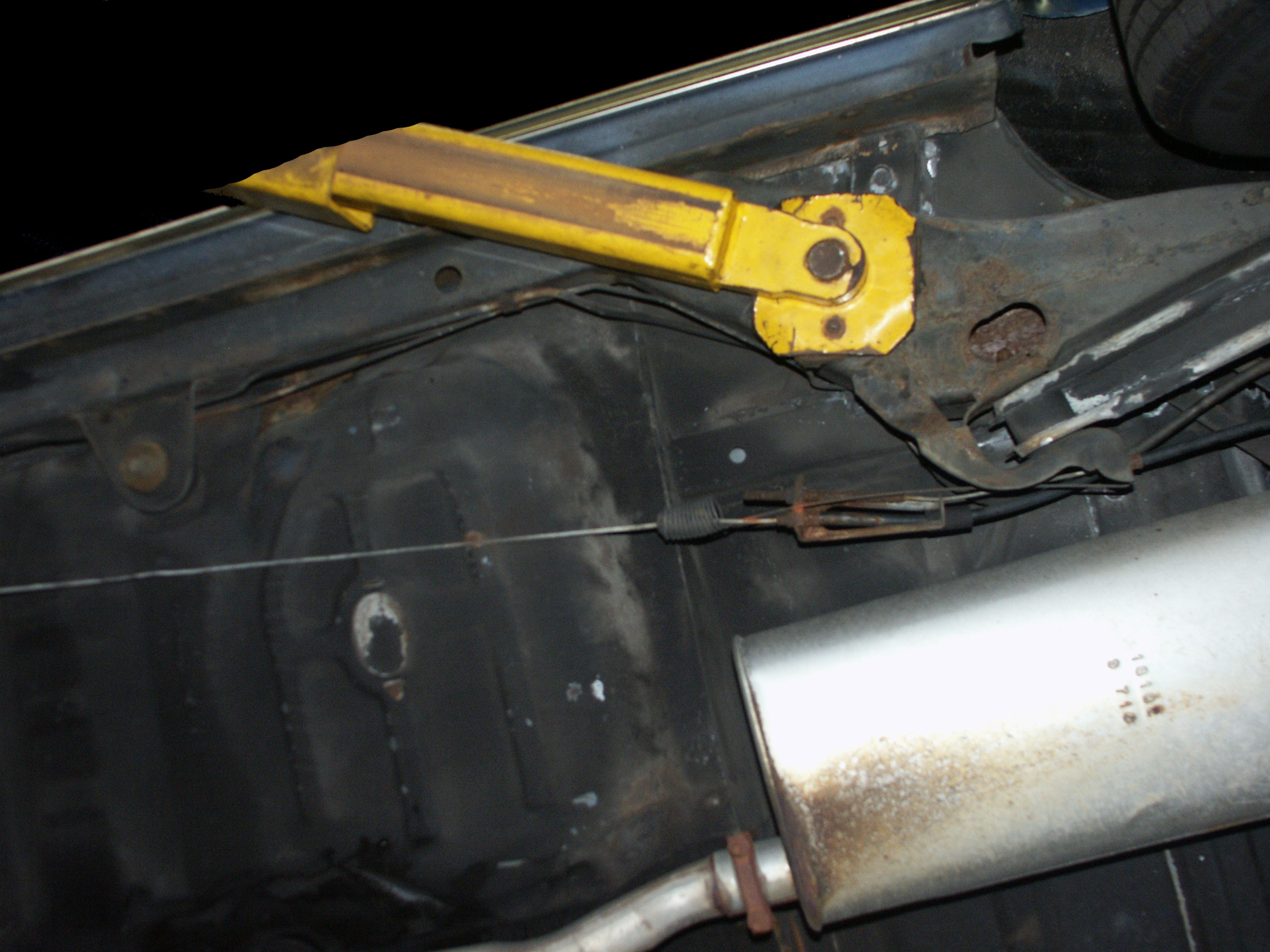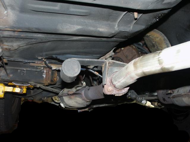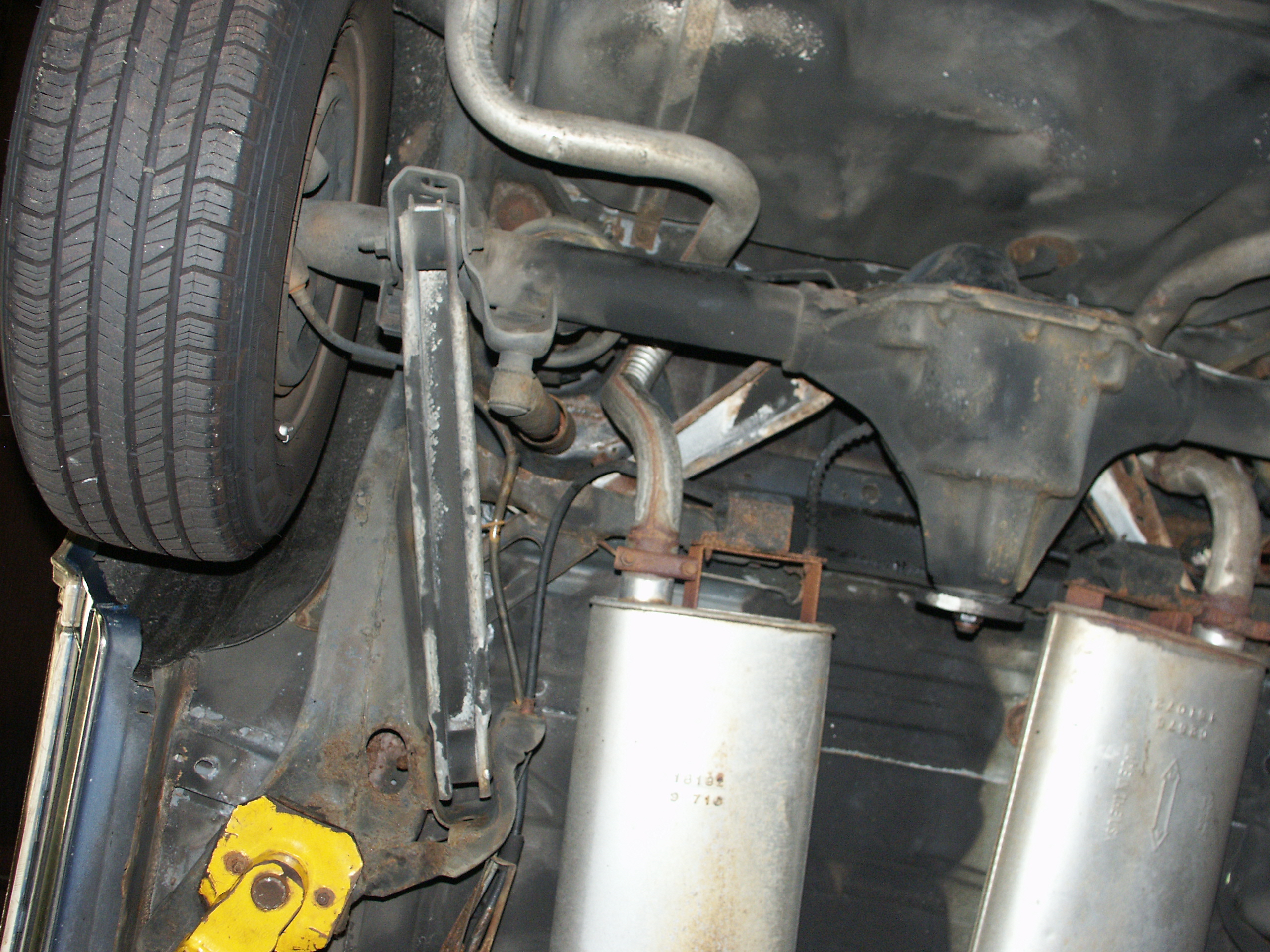 of the emergency brake cabling and the muffler mounts. Also notice no
