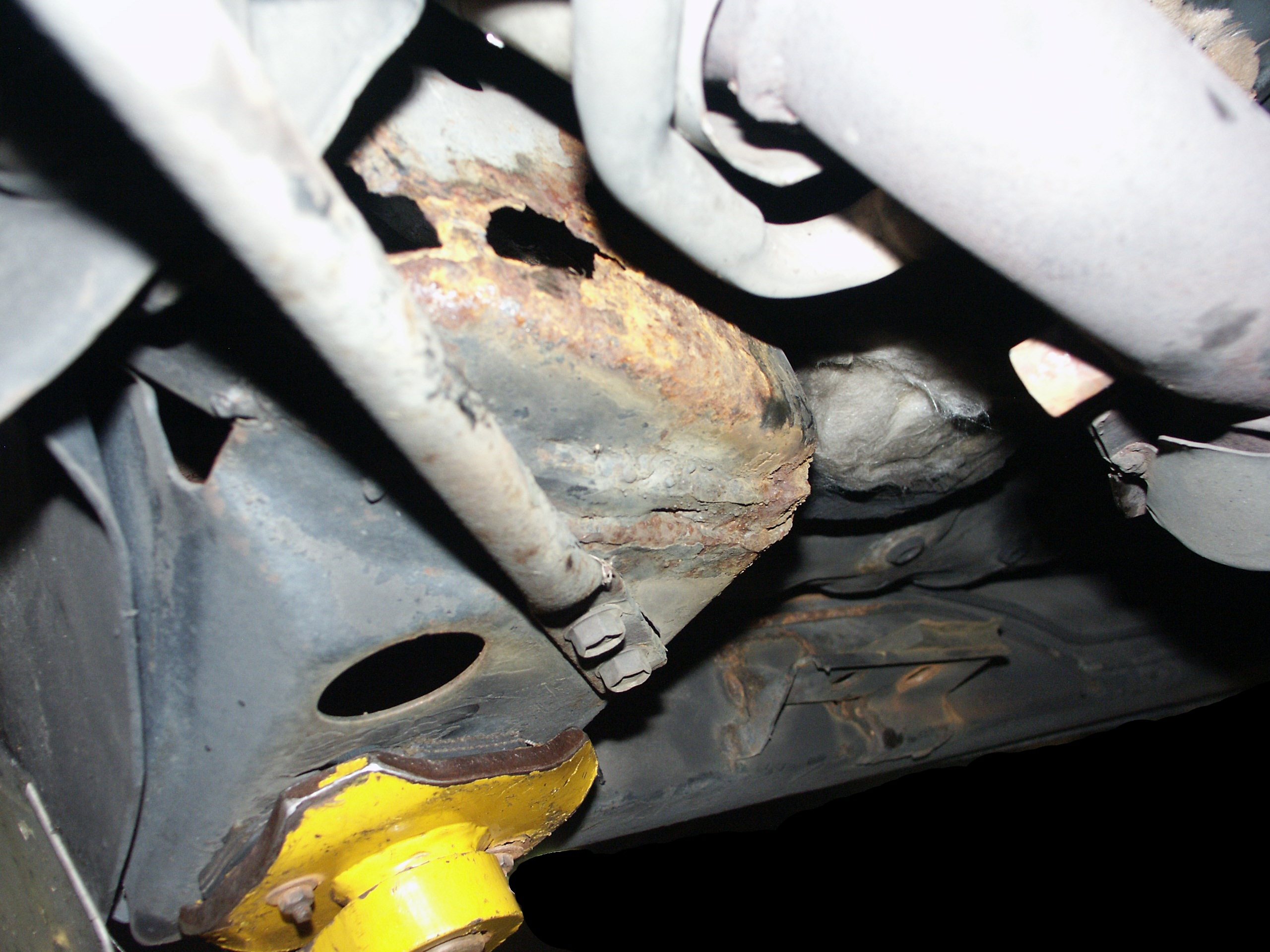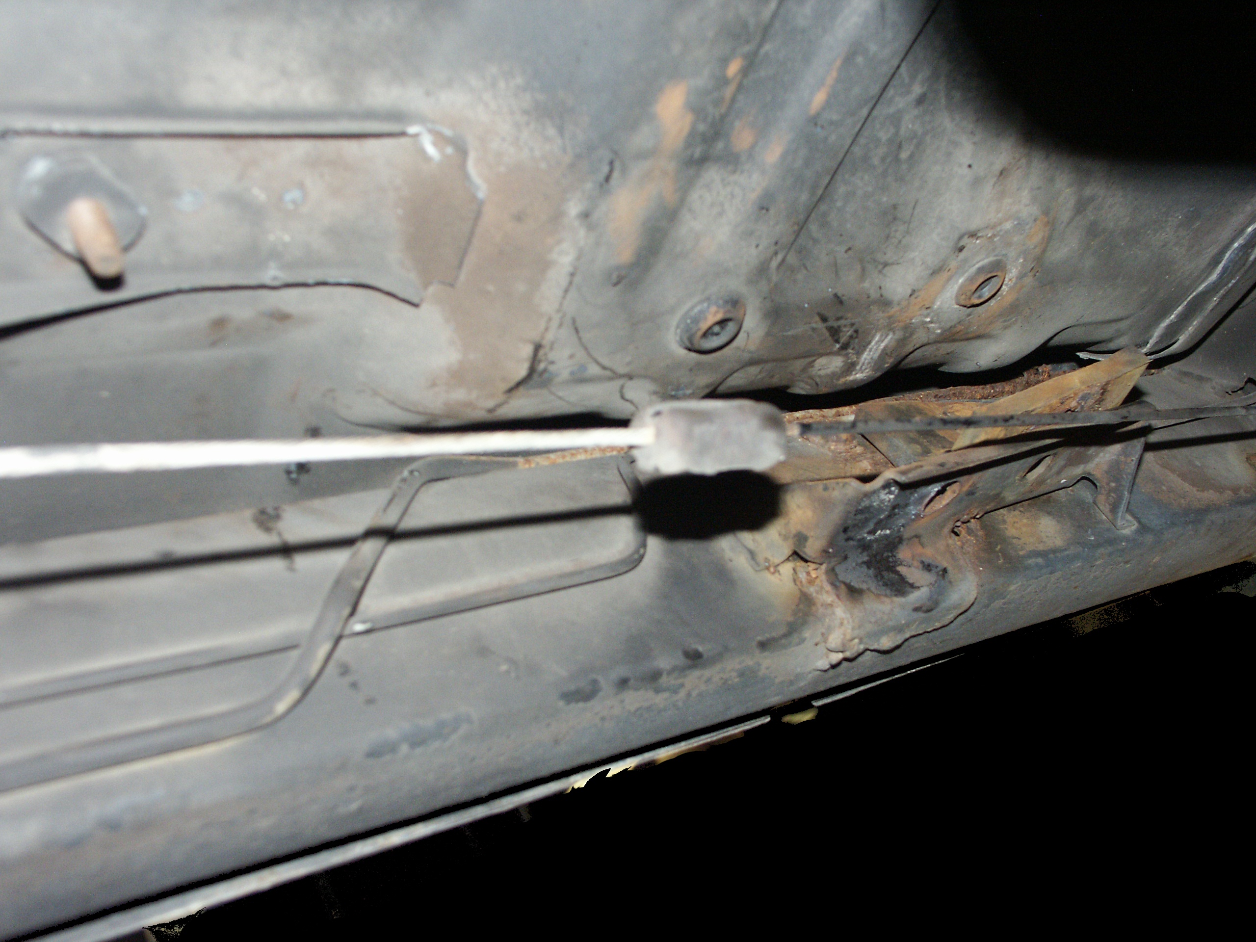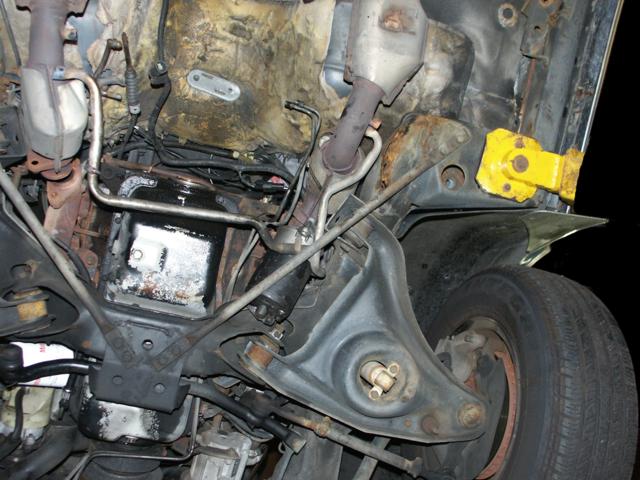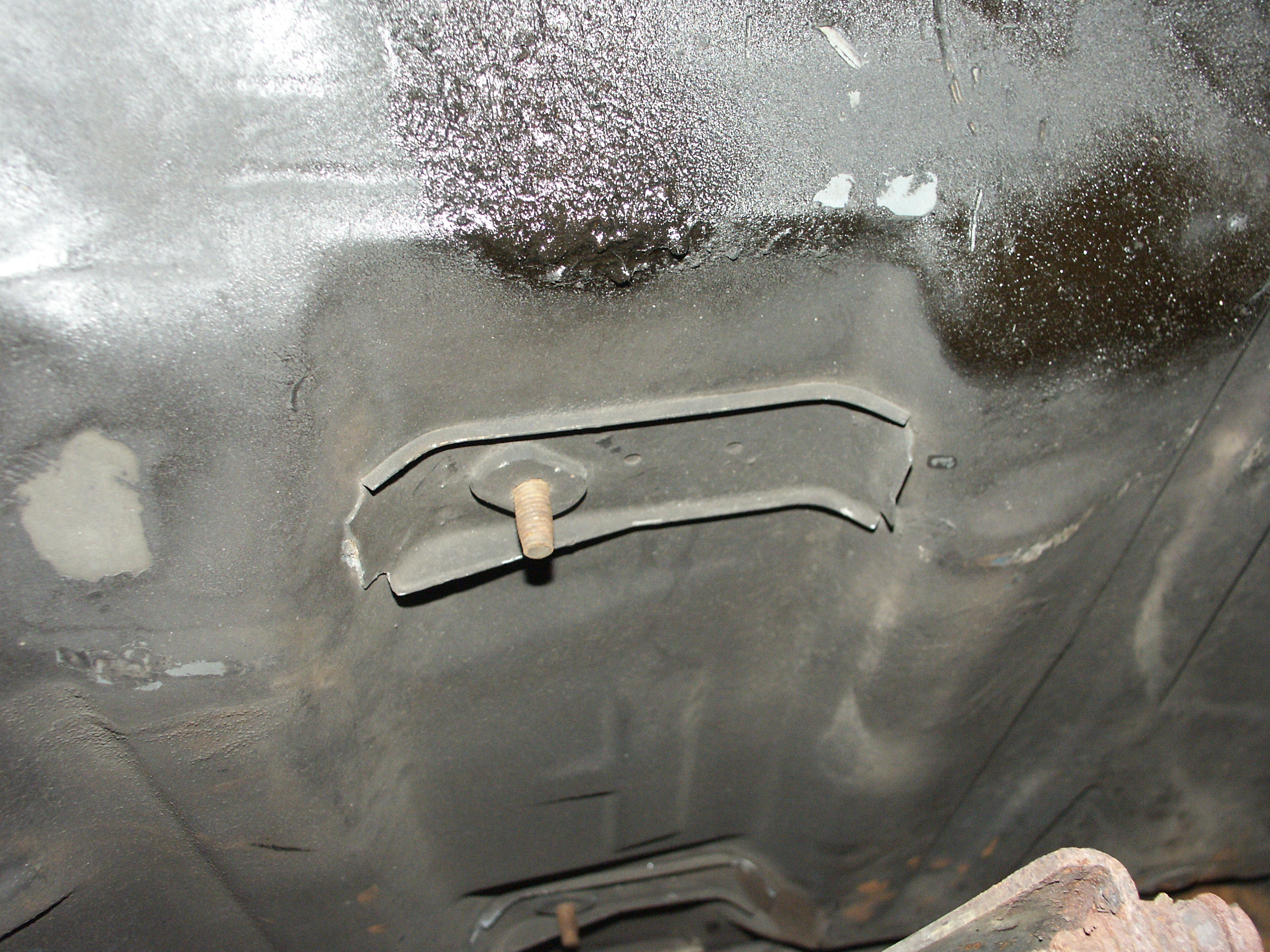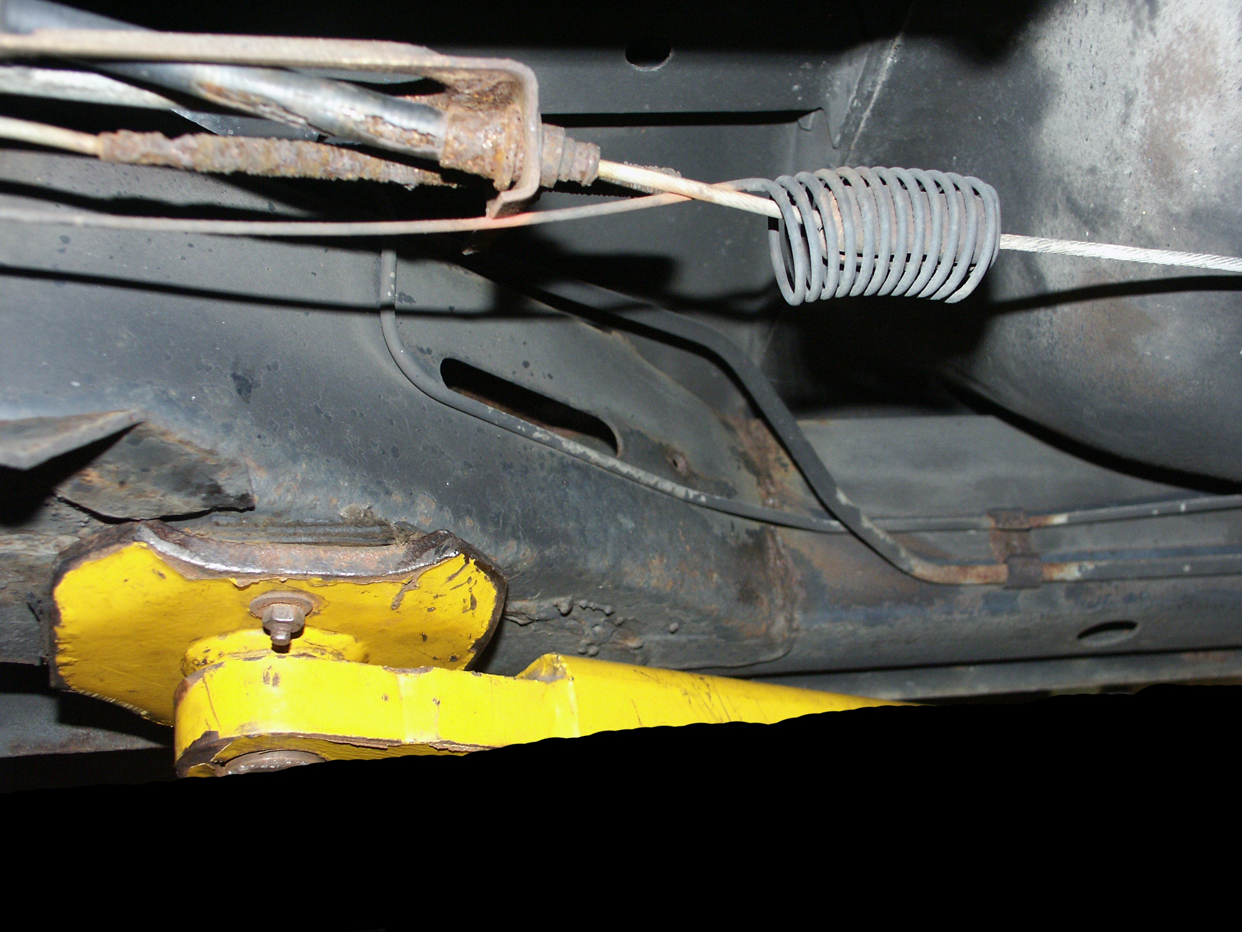 of the emergency brake cabling and the muffler mounts. Also notice no