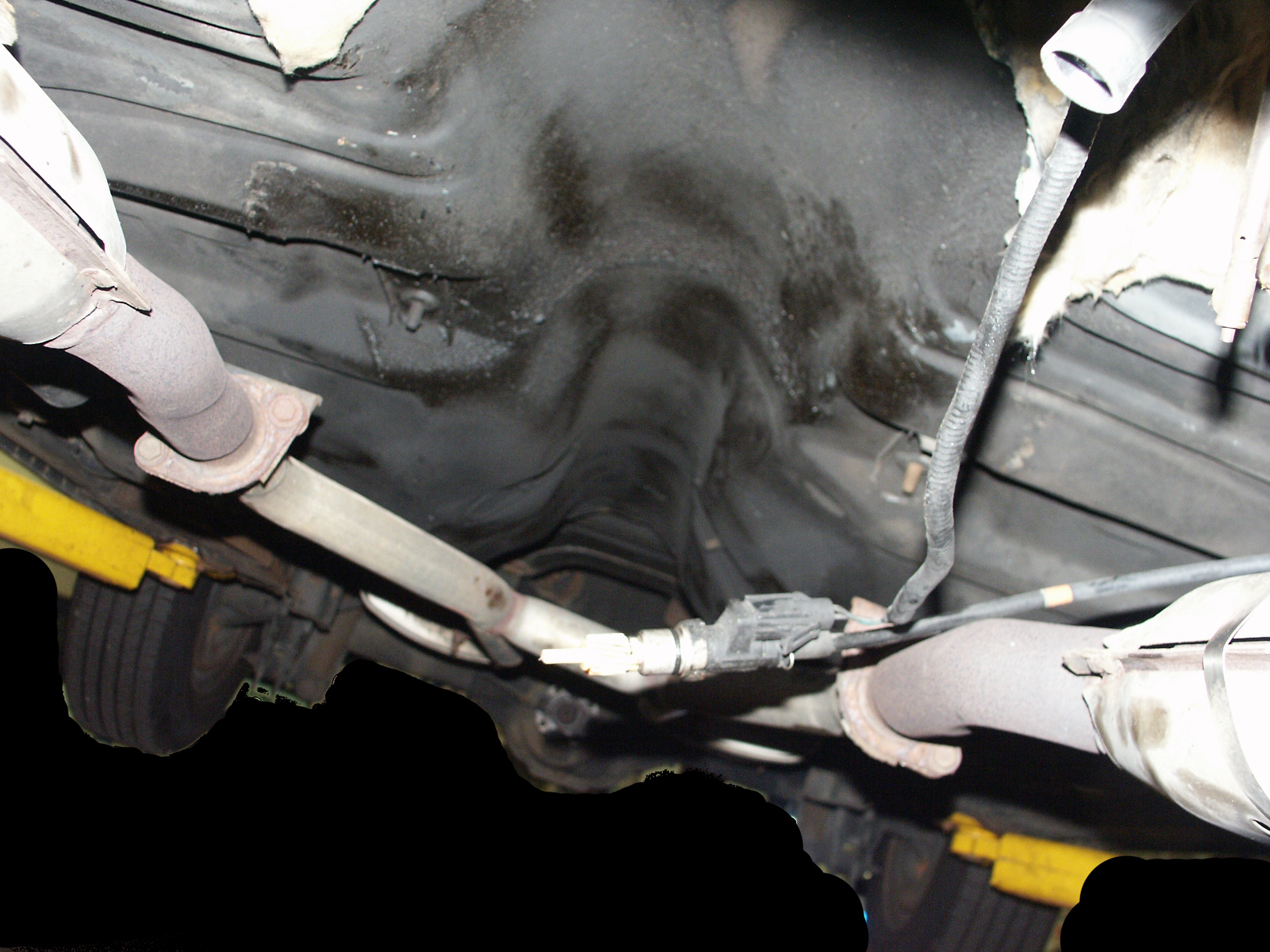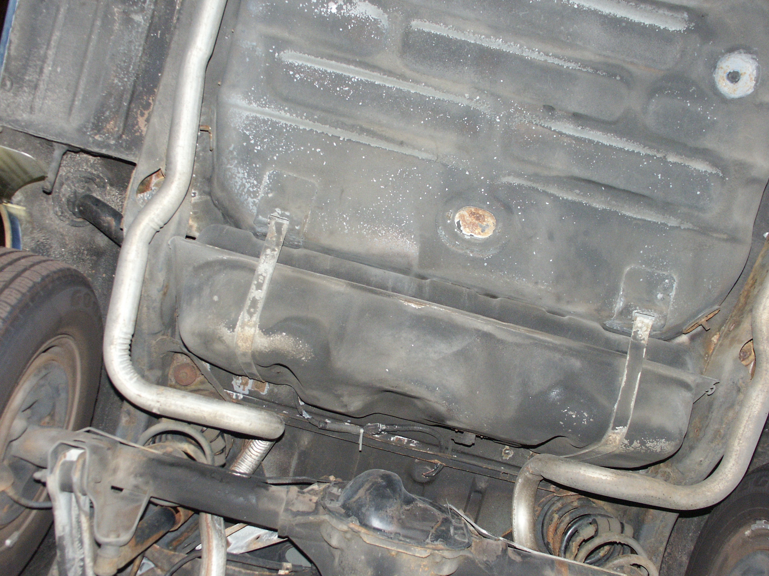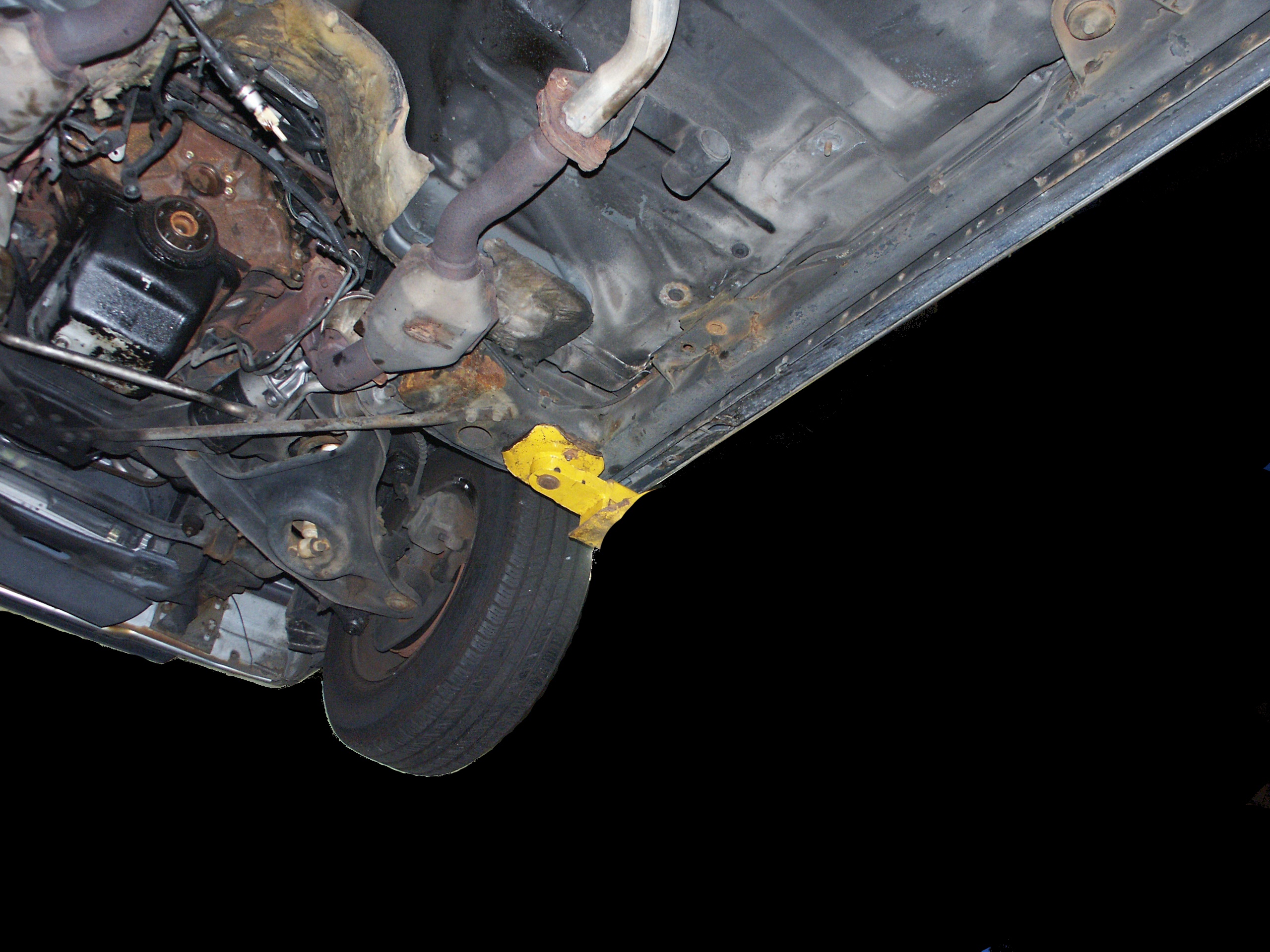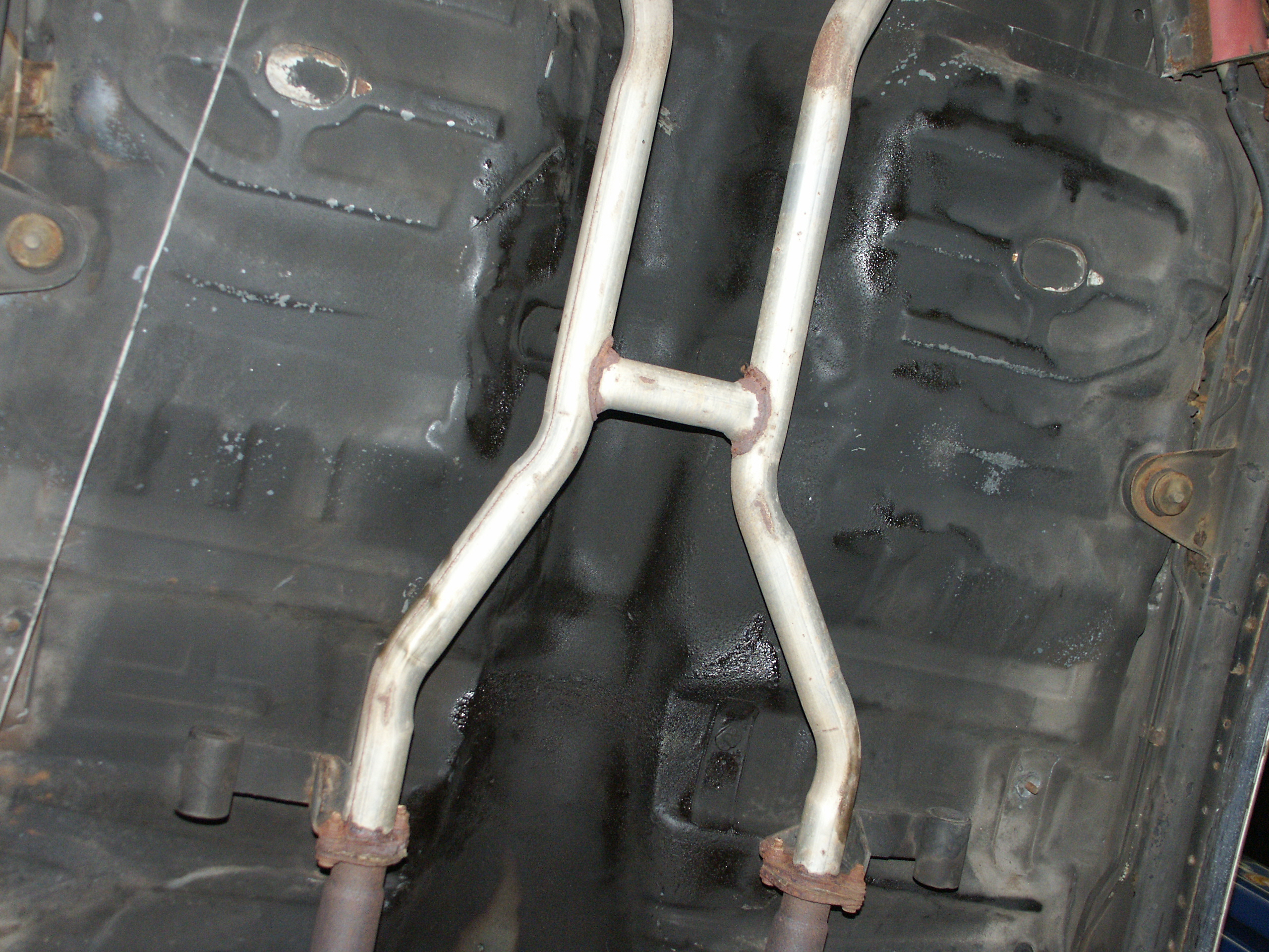of the emergency brake cabling and the muffler mounts. Also notice no